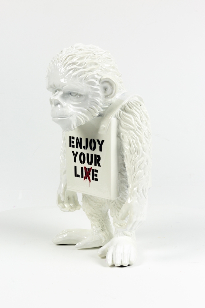 Sculpture from synthetic resin by Diederik Van Apple. These 'street monkeys' are hand painted and have a printed inscription. The edition is limited to 250 pieces.