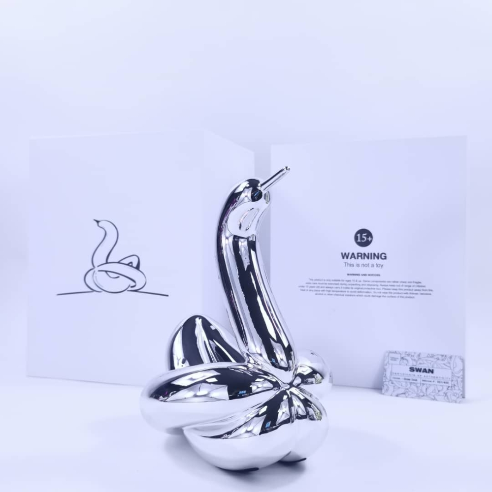 Balloon Swan Silver Certificate of authenticity (card) Editions Studio. Limited Edition of 499 Numbered on the box, unique authenticity card per work. 30 x 17 x 20cm Hologram on the box Delivered from FRANCE Fast and secure delivery with tracking number and insurance