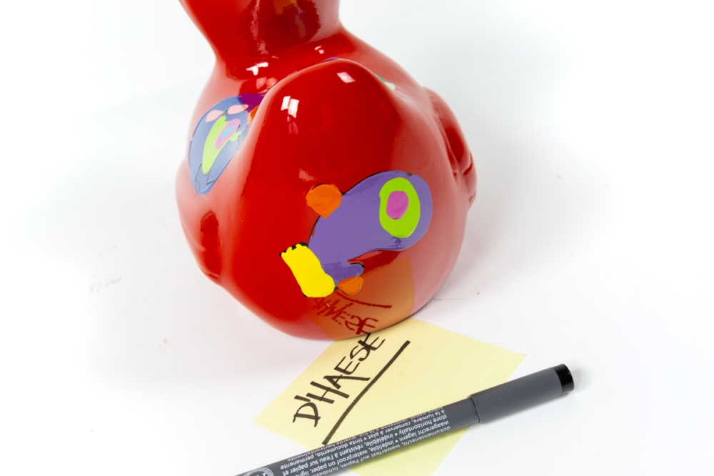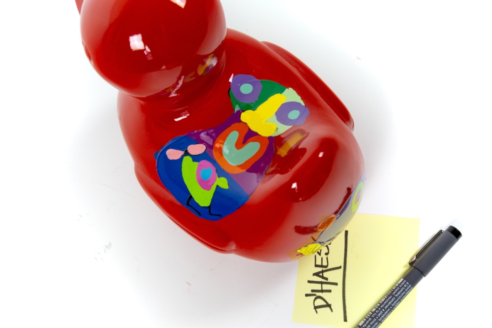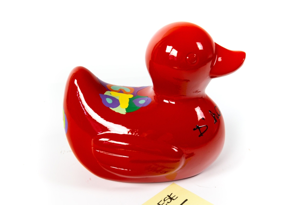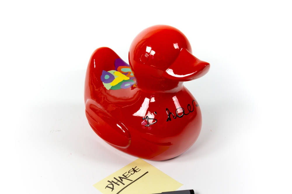 A red duckling from Hannes D'Haese with a unique painting in his well-known style The sculpture is in perfect condition.