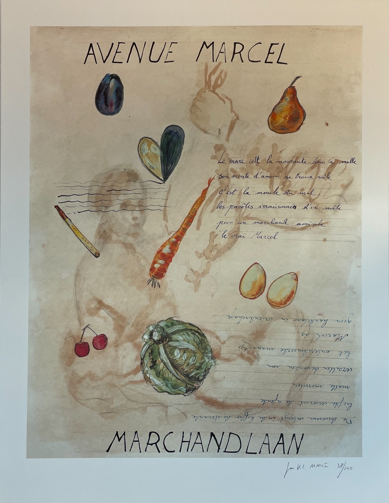 Jan Van Imschoot (1964), 'Avenue Marcel', gedateerd uit 2001, offset , N° 38/100. Getekend en genummerd op 100 exemplaren. Komt uit het portfolio Mosselmap die uitgegeven werd door het SMAK in Gent.