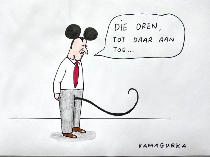 KAMAGURKA - Die oren Belgisch cartoonist, theater- en televisiemaker en allround kunstenaar. Kamagurka staat bekend om zijn absurde cartoons en tv-shows. Kamagurka (Luc Zeebroek) werd in 1956 aan de Belgische kust geboren. Hij studeerde aan het KASK in Gent maar stopte daarmee vòòr zijn eindexamen. Hij begon te werken als cartoonist bij HUMO en vergaarde daar vlug roem mee. Kamagurka publiceert in verscheidene tijdschriften en kranten van Nederland, Frankrijk, UK, Duitsland, Oostenrijk, USA en vele andere. Hij deed verschillende shows op de Belgische en Nederlandse televisie, had een radioshow samen met Herr Seele (zijn levenslange metgezel) op Studio Brussel, en treedt het ganse jaar door op in Nederland en België. Hij schreef ook een kindersprookje en twee toneelstukken die werden opgevoerd bij NTG te Gent. Kamagurka heeft meer dan 25 stripboeken uitgebracht, van Bert en Bobje tot Cowboy Henk. Als schilder heeft hij ook reeds geëxposeerd in verscheidene galerijen en musea in Nederland,België en Duitsland. Tekening Gemengde techniek (inkt, kleurstift en potlood) Hand signed Perfect condition Manga paper Size: 29×21cm