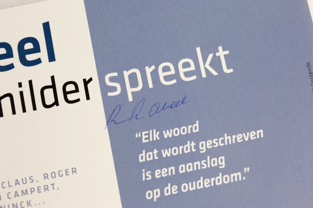 Een affiche voor de tentoonstelling "De schilder spreeekt" in 2006 . Deze affiche toont één van Raveels werken en is gesigneerd door de Vlaamse Meester Affiche is in goede tot uitstekende staat .