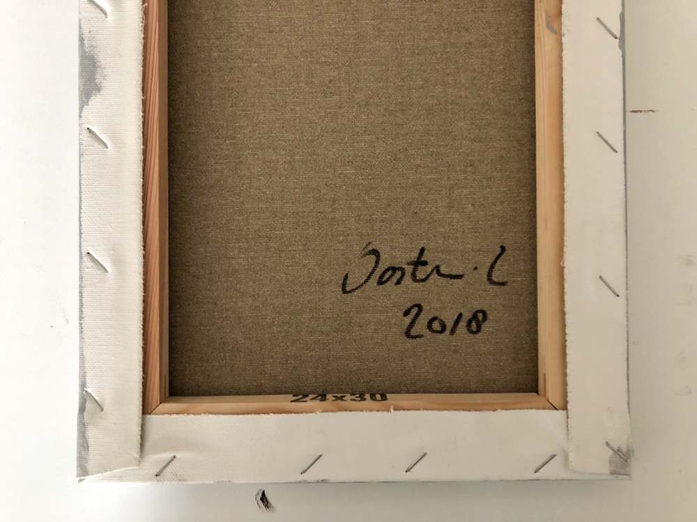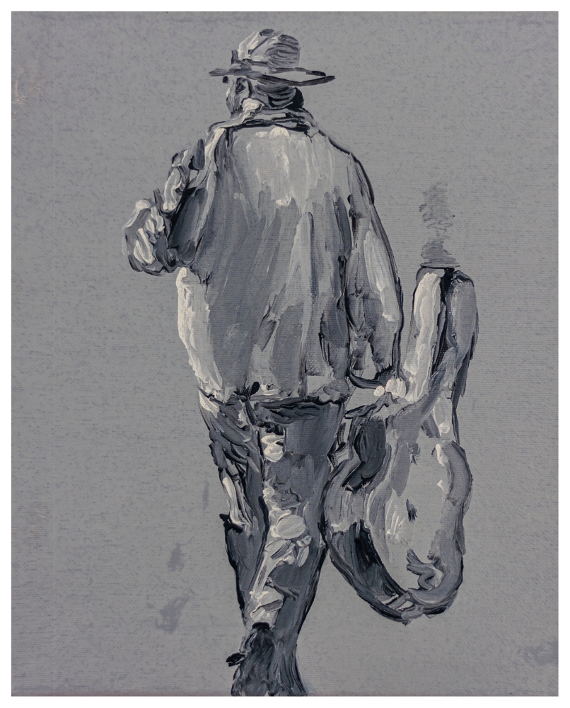 Dit schilderij heeft als titel ( Outlaws). Vaak laat ik me inspireren door films. Ik maak dan stills en gebruik dat als aanleiding voor een schilderij. Ik zoek naar spanning in het beeld en laat de toeschouwer graag hun eigen fantasie gebruiken over wat er op het schilderij te zien is. Dit schilderij is geïnspireerd op een muziek stroming in Amerika. The outlaws. Lambert Oostrum is nog steeds actief als beeldend kunstenaar. In het begin van zijn loopbaan heeft hij in 1987 de Alfons Blomme prijs gewonnen. Recent werkt Lambert meer abstract met af en toe wat figuratie. In 2018 is hij genomineerd voor de Herman Krikhaarprijs in Almelo . Het schilderij van de nominatie heet: Fresh Product Het een en ander is te lezen op zijn website: www.lambertoostrum.nl
