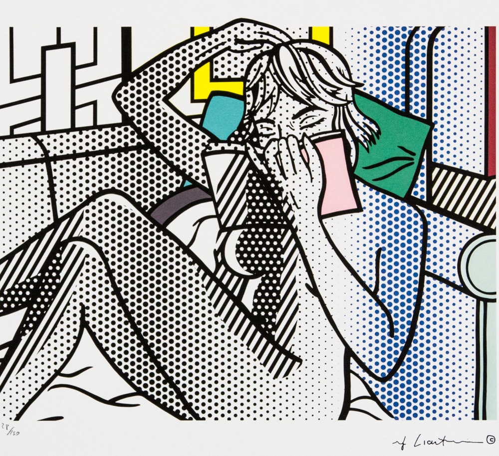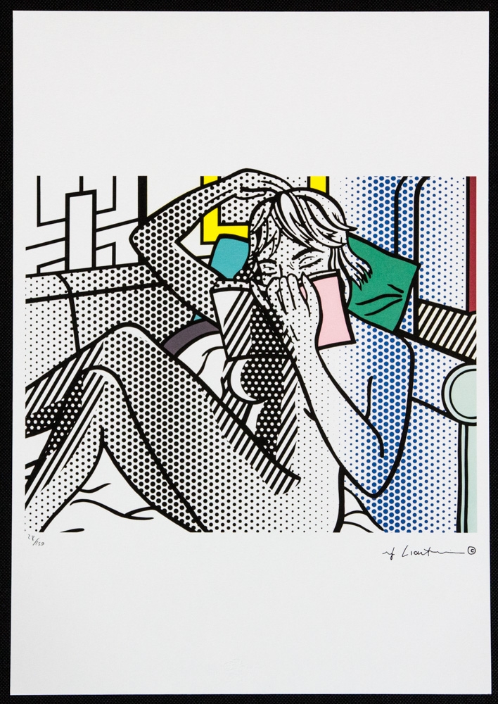 Roy Lichtenstein (after) "Nude Reading" limited edition of 150, offset lithography, plate signed bottom right, numbered with pencil bottom left 28/150, heavy paper, with "STYRIA Studio" embossing,"CASTELLI Graphics" stamp on the back, sheet size 35 x 50cm, without additional documentation, sold unframed; we offer in-house shipping, if the buyer win multiple items, we will combine shipping