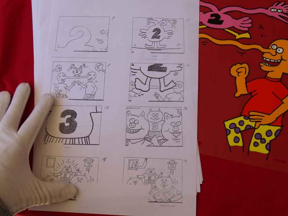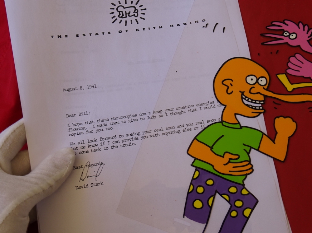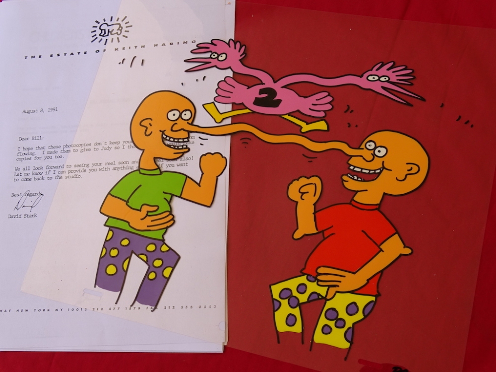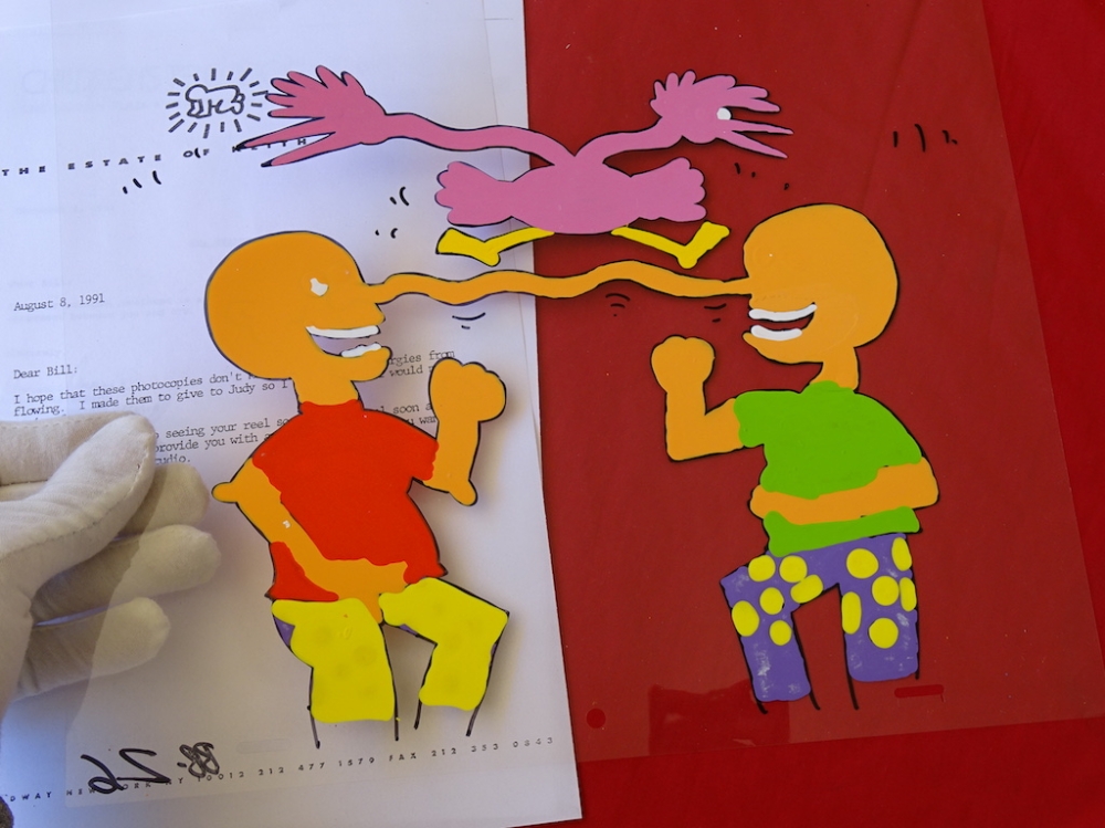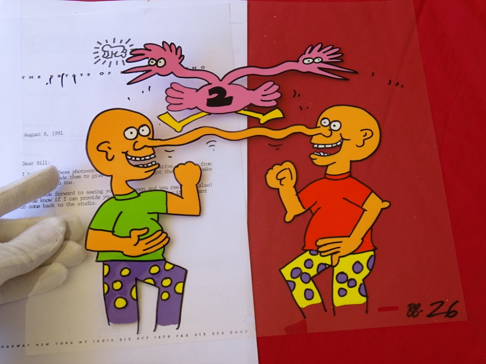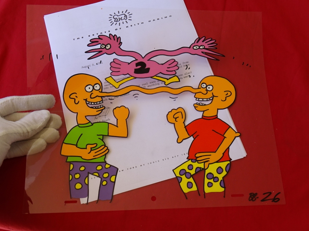 The piece measures approximately 31.5 x 26.5 cm. This is an authentic hand painted animation created by Keith Haring (D 1990) for use in the production of an animated advertisement on the show "Sesame Street", this drawing is unique in the world. https://www.youtube.com/watch?v=N3ygSVpRkC4 This cellulo was part of a cartoon created for children's television in 1991 and broadcast on "Sesame Street". The cel was created before Haring's death in 1990. Photo cards and a copy of the Count 10 movie storyboard included. Keith Haring was one of the most important street and graffiti artists of the late 20th century. His commitment brought street art to international attention, also thanks to the political and social messages conveyed through his works.