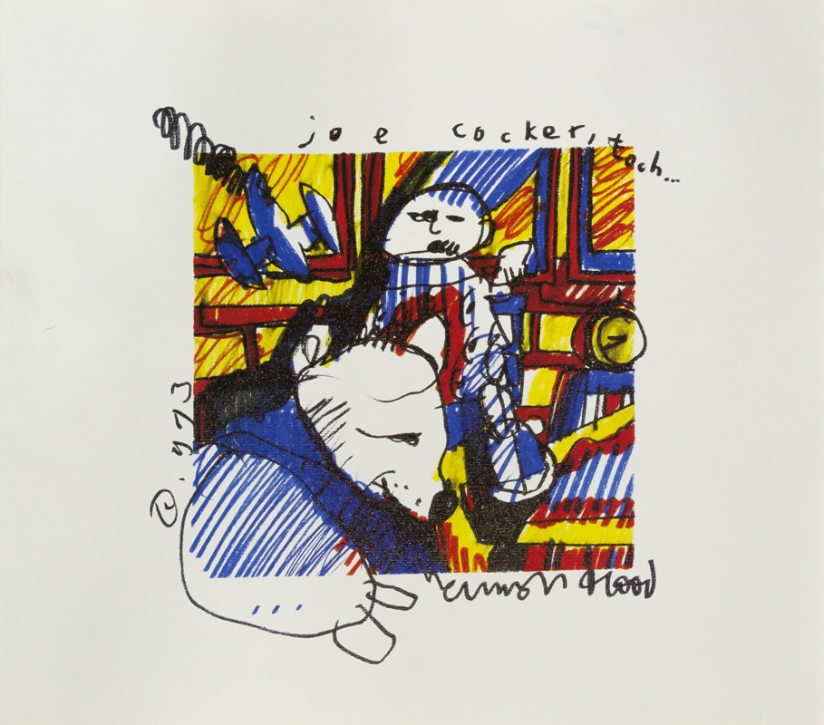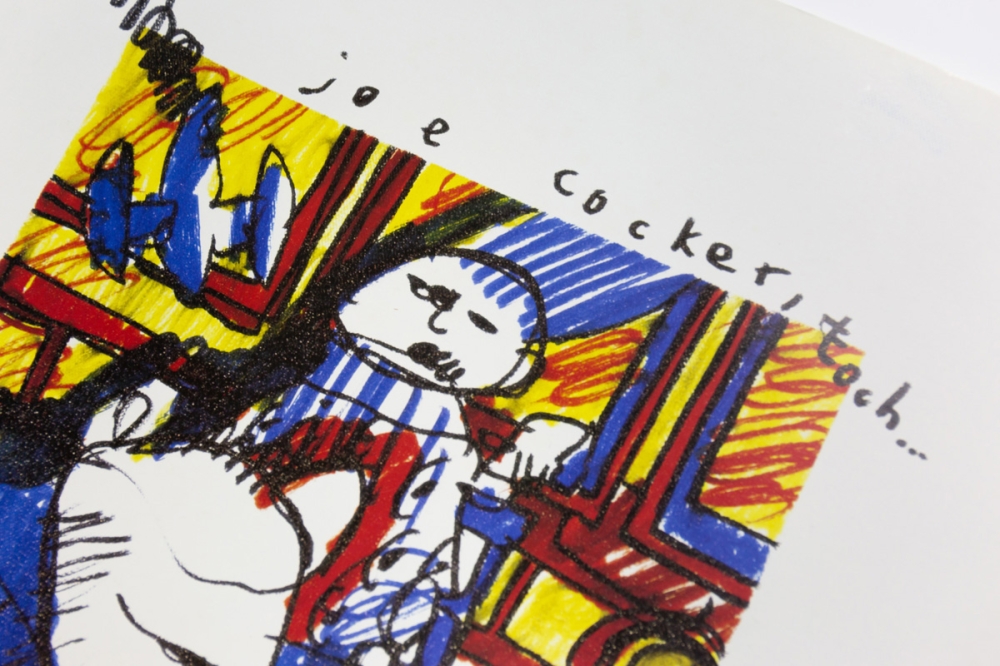 Print from Herman Brood 's Joe Cocker litography, originally made in 1993 for a collaboration with free record shop. The print is made on a thicker paper.