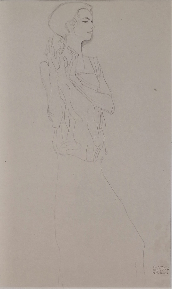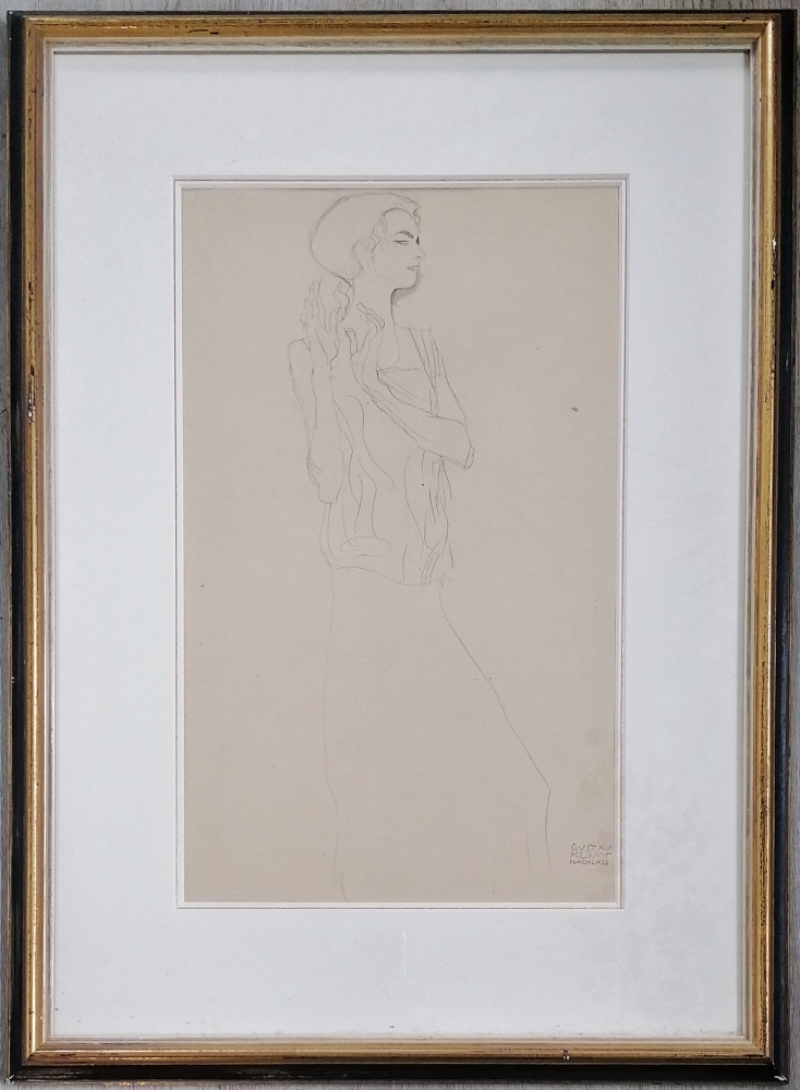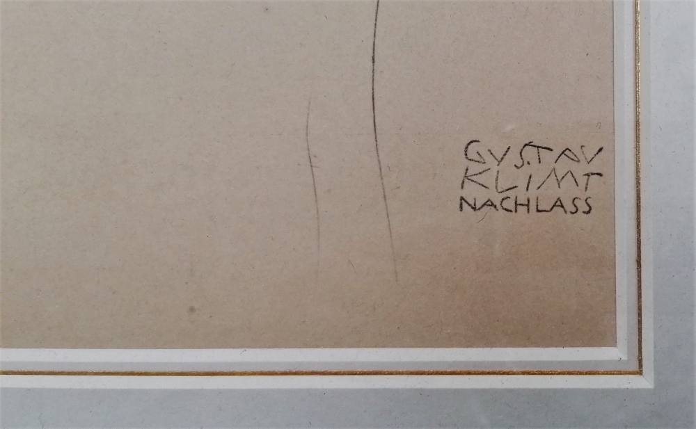 Gustav KLIMT (1862-1918) Originele lichtdruk op crème papier, 1919 Gesigneerd met het stempel van het nalatenschap in het werk rechts onder Originele uitgave Wenen; Verlags Gilhofer & Ranschburg, Wien, Juli 1919 Museaal onder drie dubbel passe-partout, in een hand op maat gemaakte, zilver verguld kader van Gehring/Heijdenrijk gekaderd.