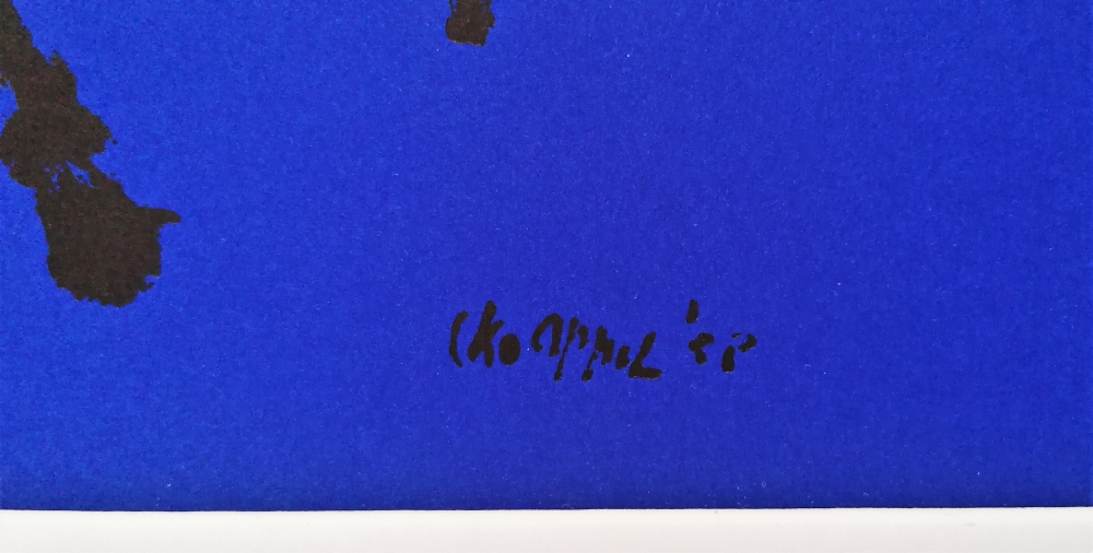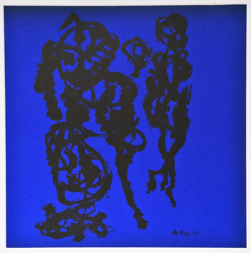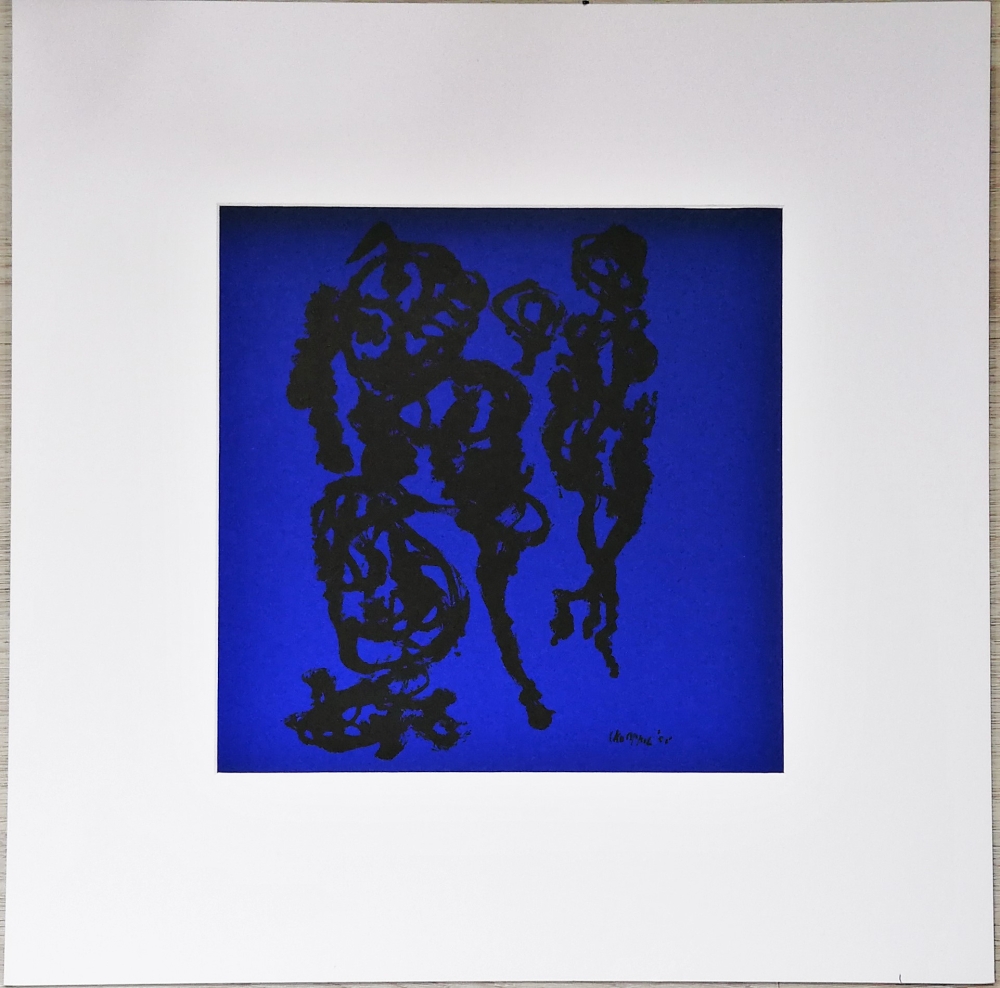 Karel Appel (1921 - 2006) litho van Karel Appel met twee abstracte figuren. Gesigneerd en gedateerd in het werk rechts onder 1958. Afmetingen zijn 29 x 29 cm. In een passe-partout, klaar om ingekaderd te worden.