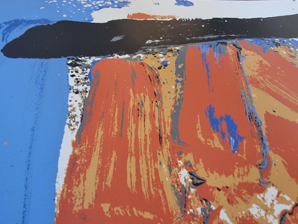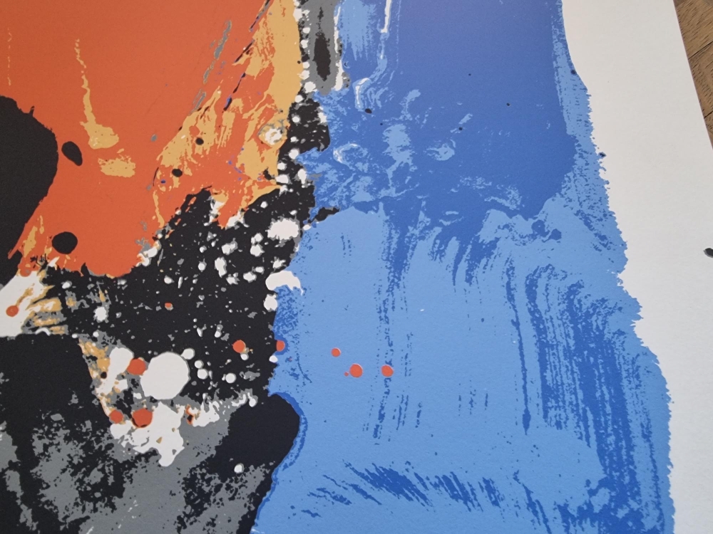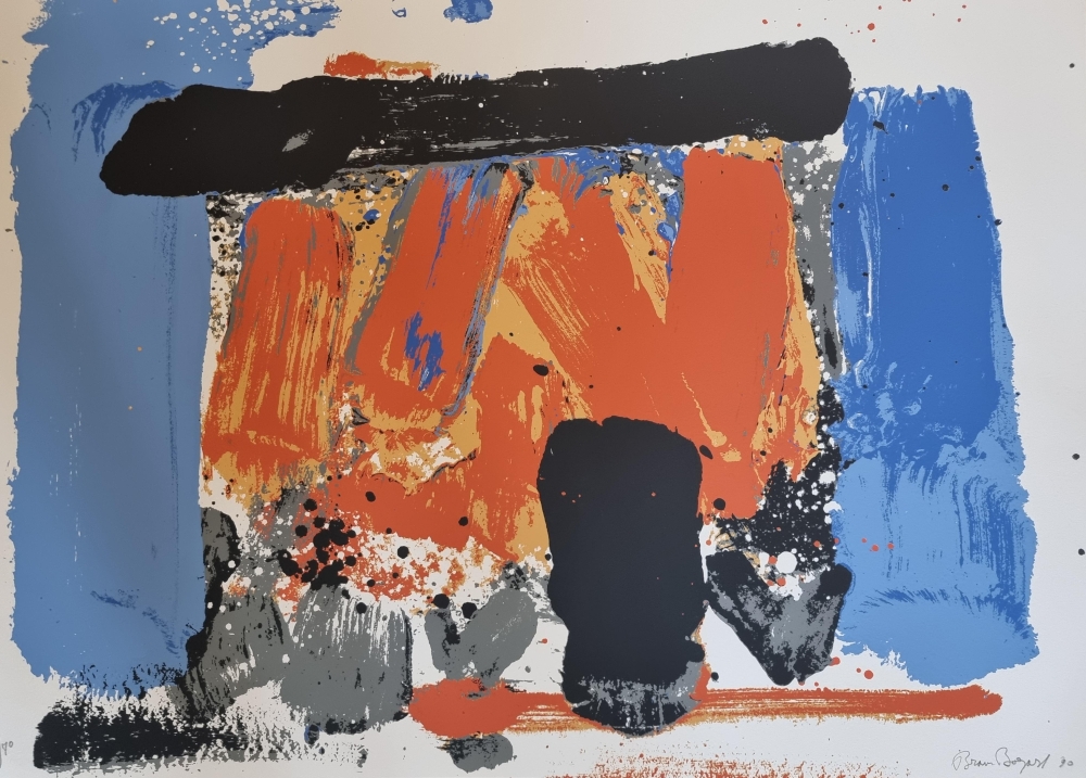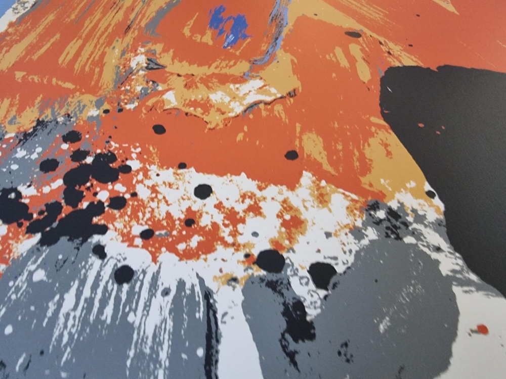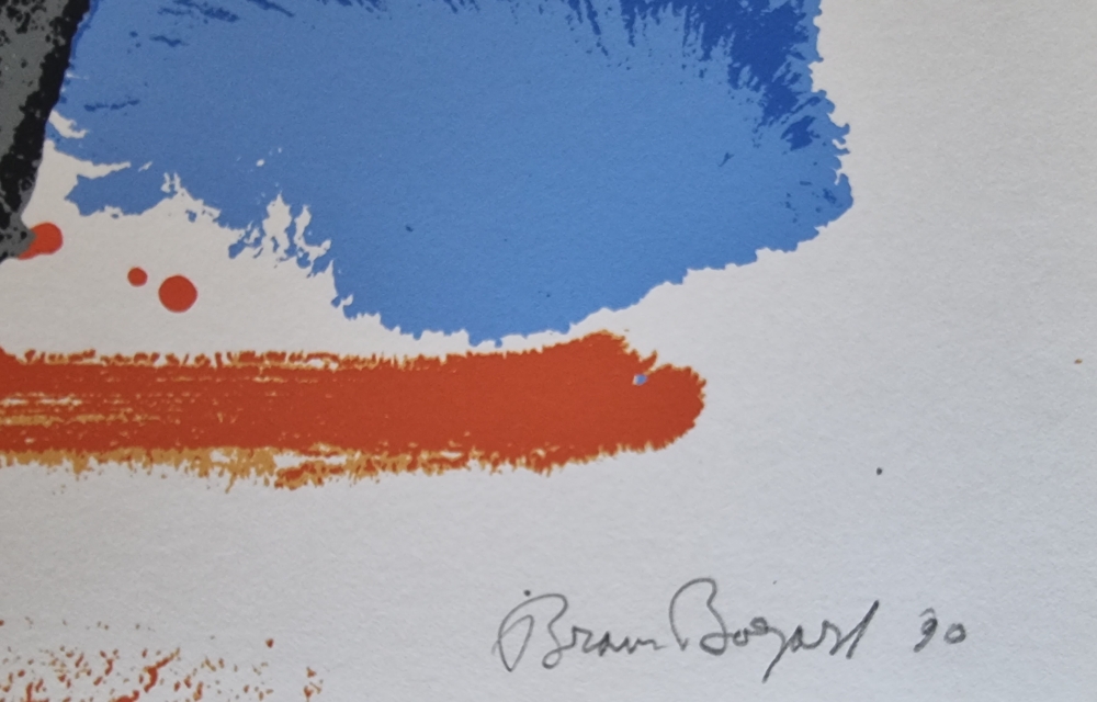 Color lithograph from 1990 by Bram Bogart. Signed and numbered in pencil. Edition of only 70 ex. 50x70cm Perfect condition Bram Bogart is a Dutch/Belgian abstract painter. He is also known as Abraham van den Bogaert. Before and during the Second World War, the artist made figurative paintings such as landscapes and still lifes. Due to the limitations during the war years, he had to use non-conventional materials such as putty and sand mixtures. The fascination for texture and form later continued in his otherwise abstract work, which became increasingly simple and powerful. Bogart is often mentioned as one of the Informals. Although he was never a member of the Informal Group, he is one of the artists who has condensed the Informal style of painting into an essence that cannot be found anywhere else. He worked in The Hague from 1943 to 1948. Interspersed with stays in Delft and France. He later moved to Belgian Limburg where he bought a castle with large studios.