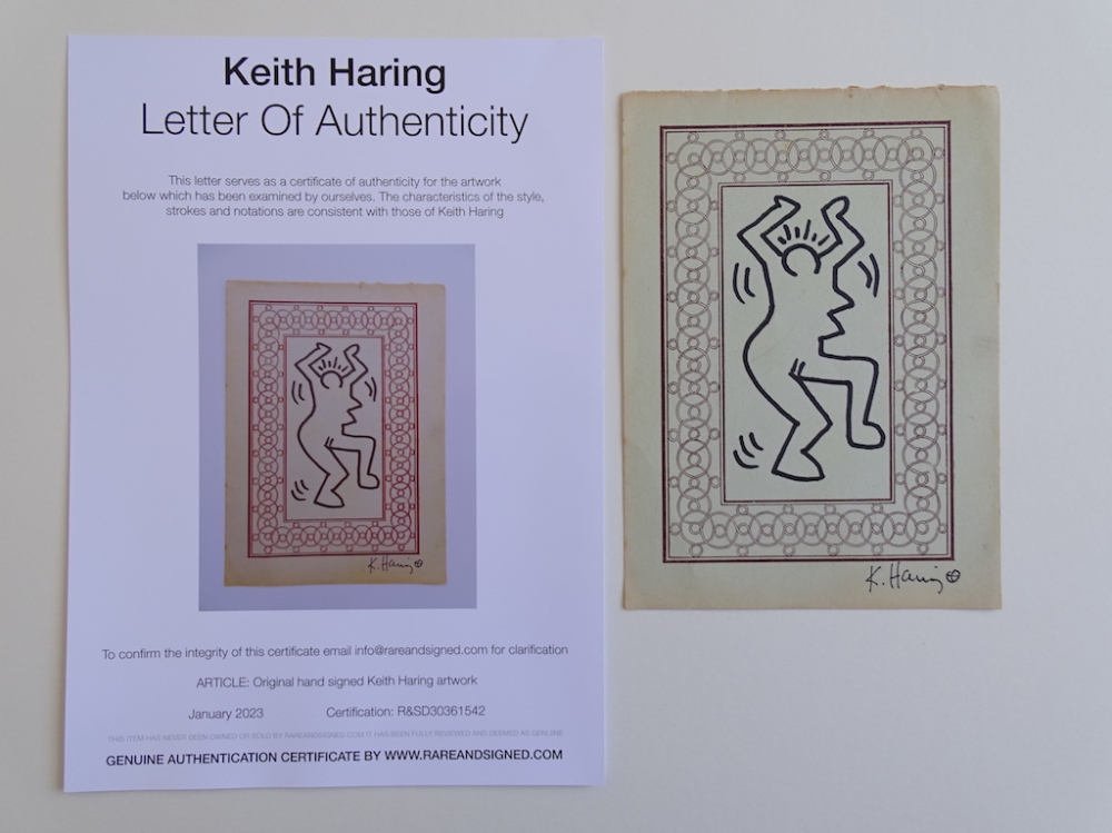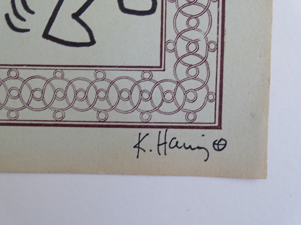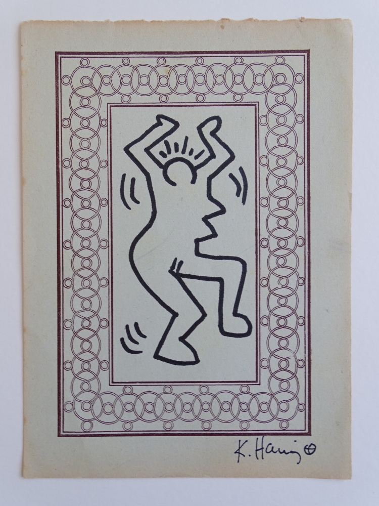 Keith Haring (attributed), ink drawing Keith Allen Haring (May 4, 1958 February 16, 1990) was an American artist whose pop art emerged from the New York City graffiti subculture of the 1980s. His animated imagery has "become a widely recognized visual language". Much of his work includes sexual allusions that turned into social activism by using the images to advocate for safe sex and AIDS awareness. In addition to solo gallery exhibitions, he participated in renowned national and international group shows such as documenta in Kassel, the Whitney Biennial in New York, the São Paulo Biennial, and the Venice Biennale. The Whitney Museum held a retrospective of his art in 1997.