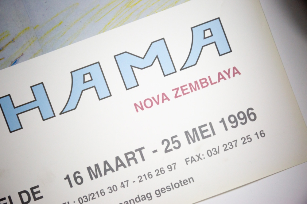 Poster for the Tahama Nova Zemblaya exhibition of Panamarenko at Ronny Van de Velde in 1996. This is an original poster from that period.
