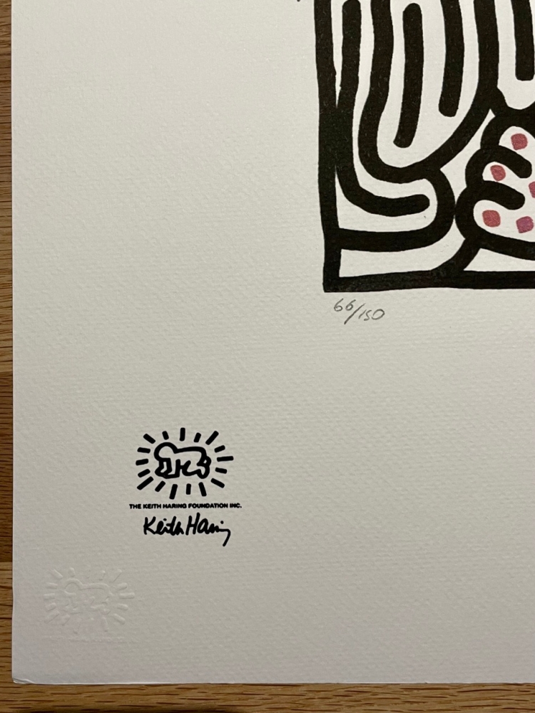 Lithograph "Untitled" Signed of the plate and numbered by hand Limited Edition of 150 pieces Each piece is individually numbered # 66/150 Overall size : 50 cm x 70 cm Dry stamp Keith Haring Foundation