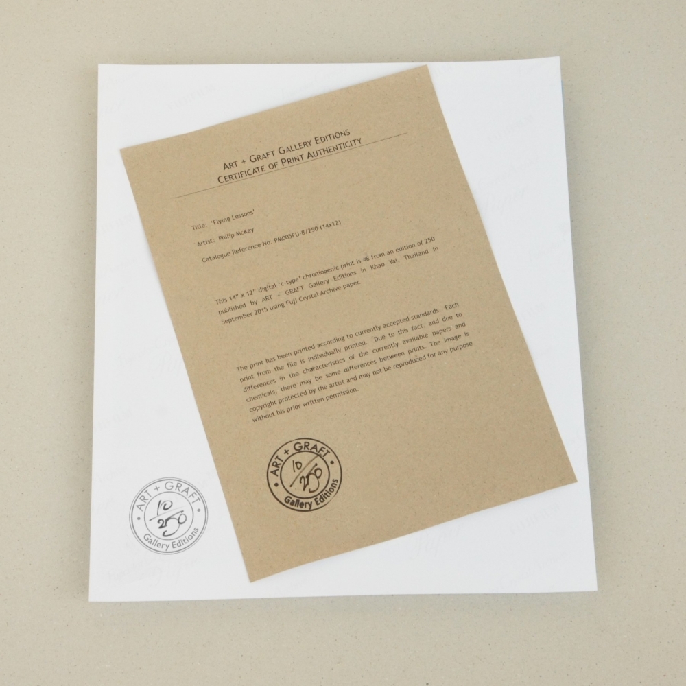 ● Philip Mckay is an English artist, born in 1963. His work embraces both photography & digital art. ● He is influenced by events from his past and uses despair and loneliness as the basis of his surrealist & atmospheric universe. His art is pensive and dreamlike. Influenced by the likes of Dali and Magritte, he skillfully creates new and unusual realities. His conceptual images are regularly published as music album covers and represented by art galleries in UK & beyond. ● Chromogenic print on Fuji Crystal Archive paper ● Paper size - 14" x 12" (36 x 30 cm) ● Image size - 10½" x 10½" (27 x 27 cm) ● Signed in the plate ● Numbered gallery stamp ● Certificate of Print Authenticity ● Title under image ● Condition - MINT ● Ships in a large PVC tube