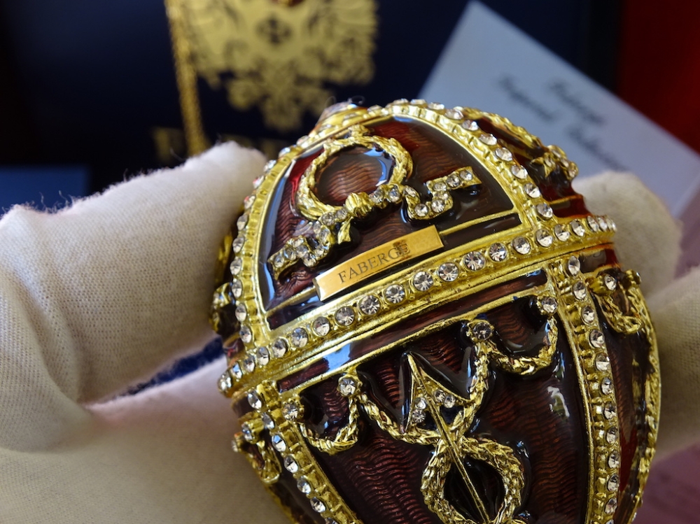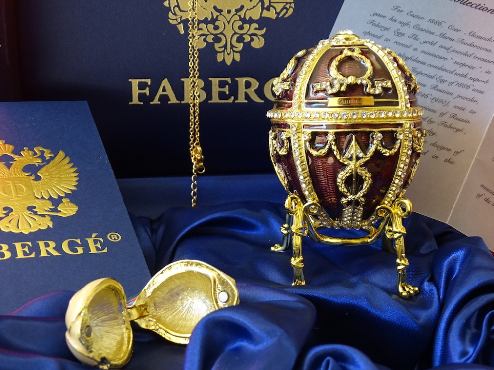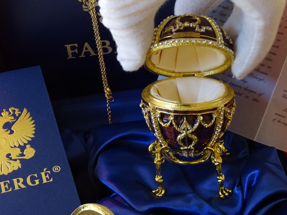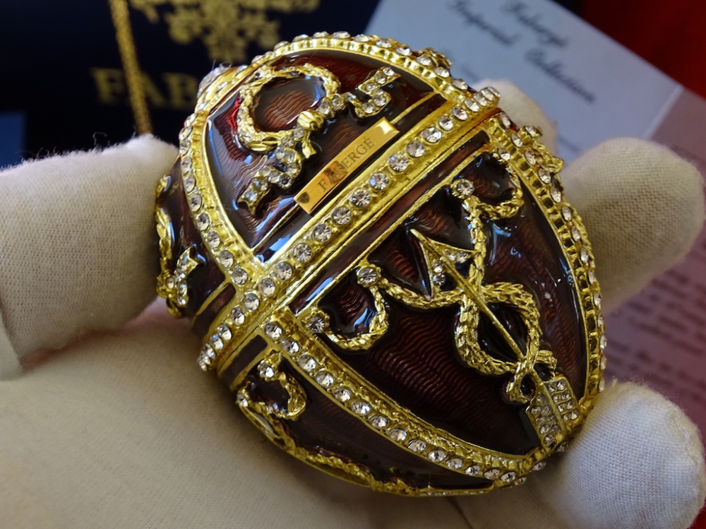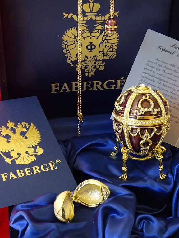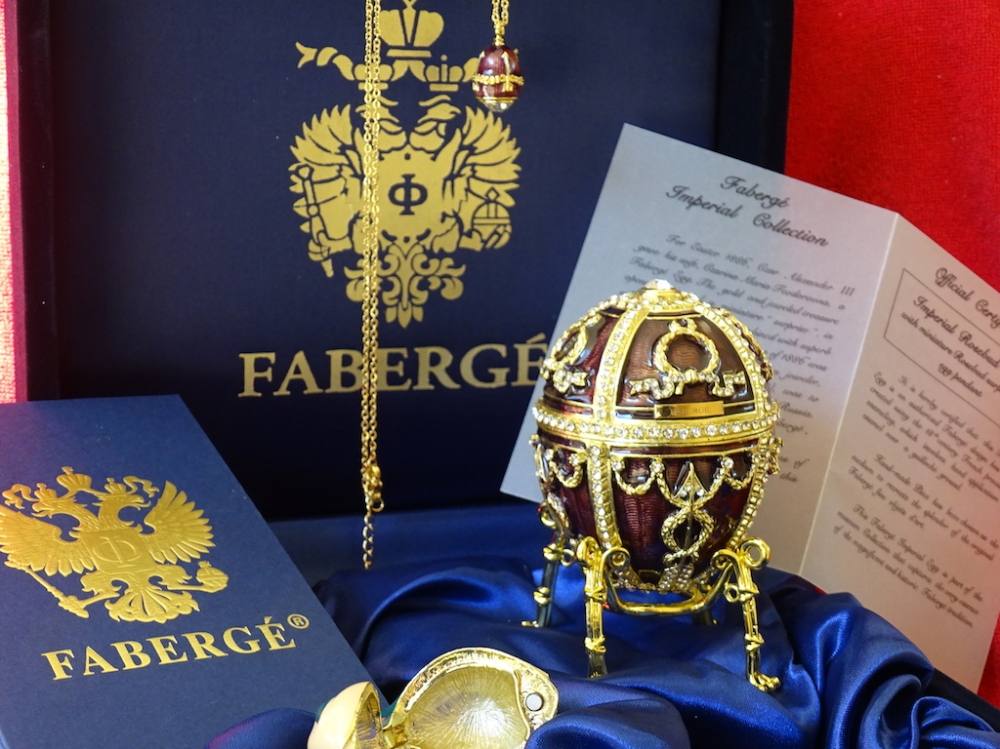 House of Faberge - Imperial Egg- Pendant inside, fully hallmarked, Certificate of Authenticity included - Enamel House of Faberge Imperial egg with COA - Certificate of Authenticity- 24 k gold finish - Enamel This is a limited edition, very rare to be found enamel with a 24 k gold plated finish and more than 200 austrian rhinestones with a very beautiful shine. Dimensions of the egg and base ca 9 cm, egg ca 7cm The Fabergé family originated in France but was forced to leave the country due to religious persecution. During the 18th century, the family settled in Russia. Peter Carl Fabergé was born on May 30, 1846, the son of a goldsmith. After apprenticing with several master goldsmiths in Germany, France and England, Peter Carl Fabergé returned to St. Petersburg a highly accomplished craftsman. In 1885, Peter Carl Faberge presented the first Imperial Egg to Czar Alexander III and soon became the most famous jeweler in the world. Investing in Faberge is as good a idea as the investments in gold bullion or even the investment in art by great artists such as Warhol, Chillida, Roy Lichtenstein Basquiat or Banksy.