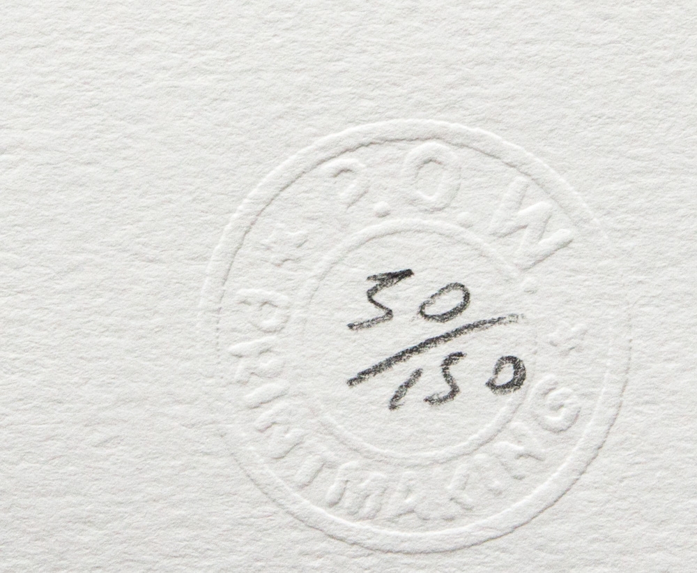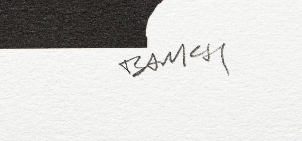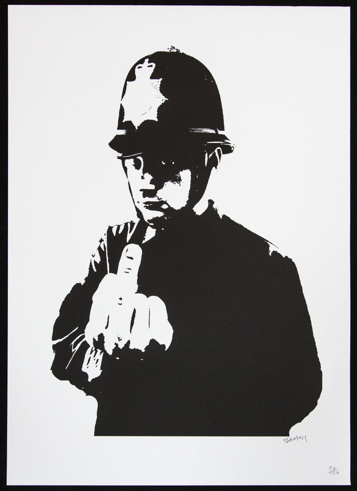 Banksy (after) "Rude Copper" offset lithography, sheet size 50 x 70 cm, numbered bottom right with pencil, signed, limited edition 50/150, two embossing stamps bottom, cotton paper, without additional documentation, sold unframed; we offer in-house shipping, if the buyer win multiple items, we will combine shipping