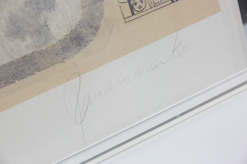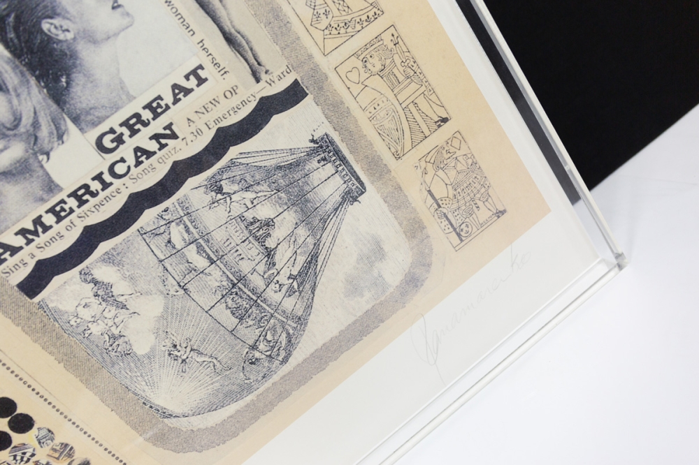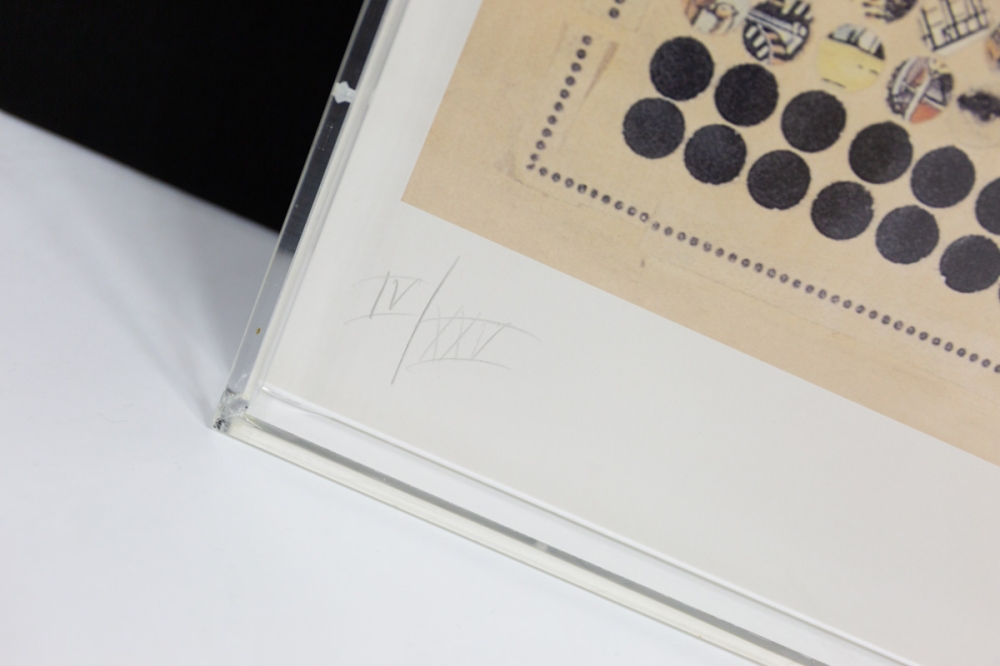 This work is in excellent to perfect condition and is framed in a plexibox. Offset and collage, certain parts of the work have only been raised by millimeters. The work is delivered with a certificate from the Panamarenkoshop.