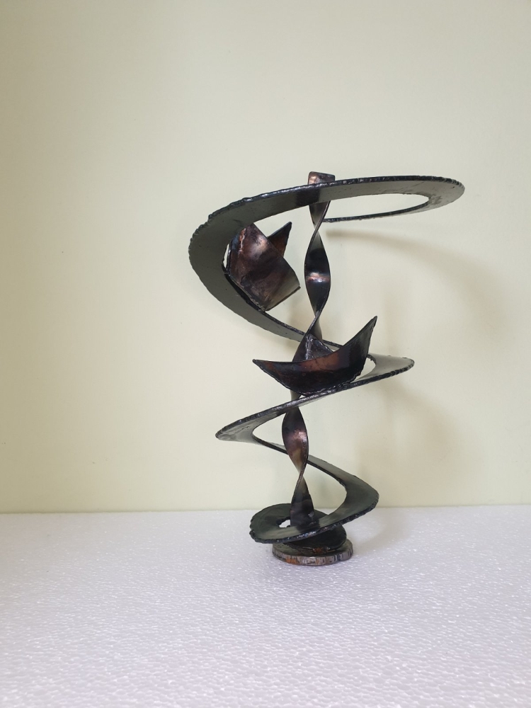 Desk Art/ sculpture/ Whirlpool dimension:380x270x270 mm material: Carbon Steel color: natural metal color.. One of a kind work Unique work, comes with a certificate of authenticity. IMPORTANT NOTE: SHIPPING TO THE EU ONLY - NO SHIPPING TO NON-EU COUNTRIES. Tihomir Sarajcic is owner of S-art Croatian craft studio/workshop that composes sculptures with welded and painted iron/ metal, wall art and paintings. Exhibitions since 2015 and 2017 in city library Slavonski Brod. The S-art studio also participate on art festivals.....