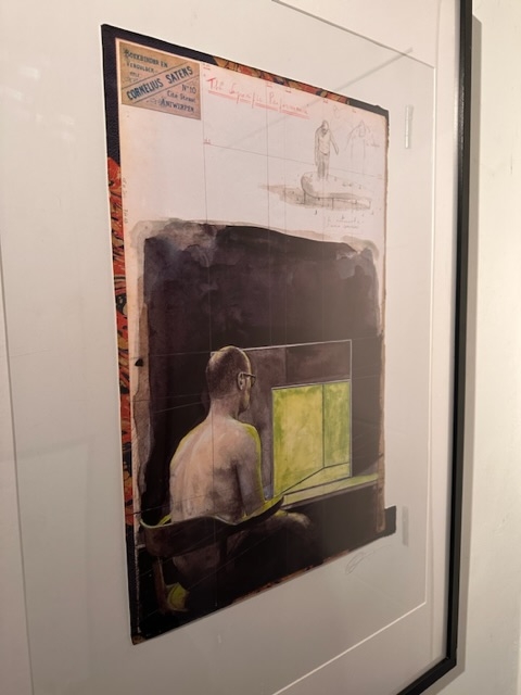 Beautiful work by the Belgian artist Guideon Kiefer. The work entitled The soporific performance is a collage and print on cardboard. Signed on the front. Not numbered. It works crazy in a frame. Small white spot on the lower white part.