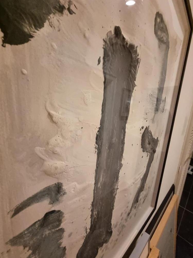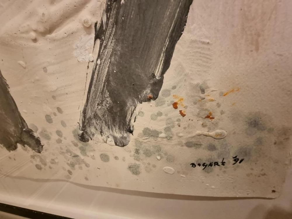 Original gouache + material by Bram Bogart from '91 Titled: "Pas Noire" Signed and dated "Bogart 91'" Professionally framed in a sleek black frame The work was purchased in a leading Belgian art gallery.