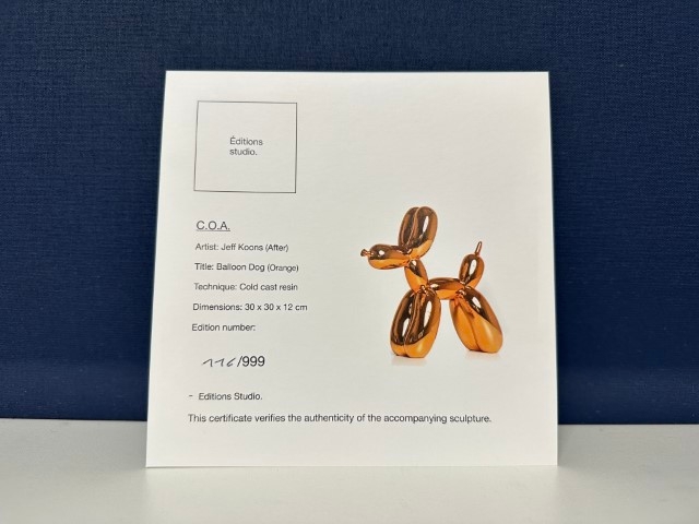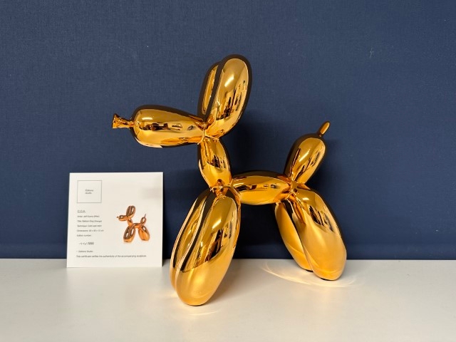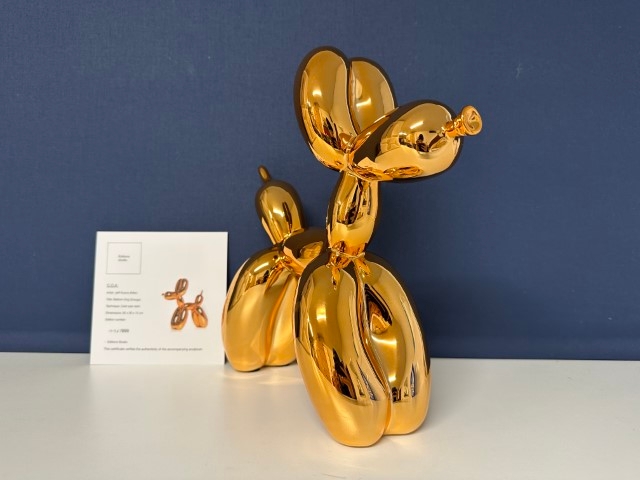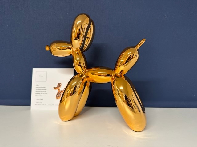 Balloon Dog in oranje. Originele verpakking en certificaat aanwezig. Dit is de eerste uitgave gelimiteerd op 999 stuks wereldwijd. Zeer zorgvuldige, verzekerde en snelle verzending. Jeffrey Jeff Koons (geboren 21 januari 1955) is een Amerikaanse kunstenaar wiens werk wordt gedomineerd door de themas banaliteit en verleiding. Hij woont en werkt in zowel New York City en zijn woonplaats York, Pennsylvania. Jeff Koons is zonder twijfel een van de belangrijkste levende kunstenaars en zijn werk is opgenomen in de meest vooraanstaande hedendaagse (museum) collecties ter wereld. Koons zijn verdienste ligt in het verwerken van kitscherige elementen in Kunst met de grote K, waardoor zijn werk, in één adem met dat van Andy Warhol, postmodernistisch wordt genoemd. Koons werk vertoont overeenkomsten met Pop Art, in zoverre dat hij elementen uit lagere kunst haalt en deze verwerkt in hogere kunst. Zijn werk wordt tot de categorie Neo Pop Art gerekend waarbij men in het geval van Koons spreekt van überkitsch: kitsch die zo sterk wordt aangezet, dat die niet meer te genieten is en juist daaraan zijn kunstzinnigheid ontleent. De werken van Koons worden verkocht voor astronomische bedragen, zo werd in 2013 tijdens een hedendaagse kunstveiling bij Christies in New York Koonss Balloon Dog Orange verkocht voor ruim 58 miljoen dollar, het duurste werk ooit voor een nog levende kunstenaar. Van de Balloon Dog heeft Jeff Koons een aantal gelimiteerde reproducties vervaardigd welke bij Kunsthuizen verkrijgbaar zijn.
