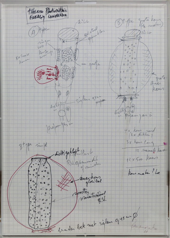 A lithograph of Panamarenko signed and numbered as AP, from the Thermo Photovoltaic Energy converter series .