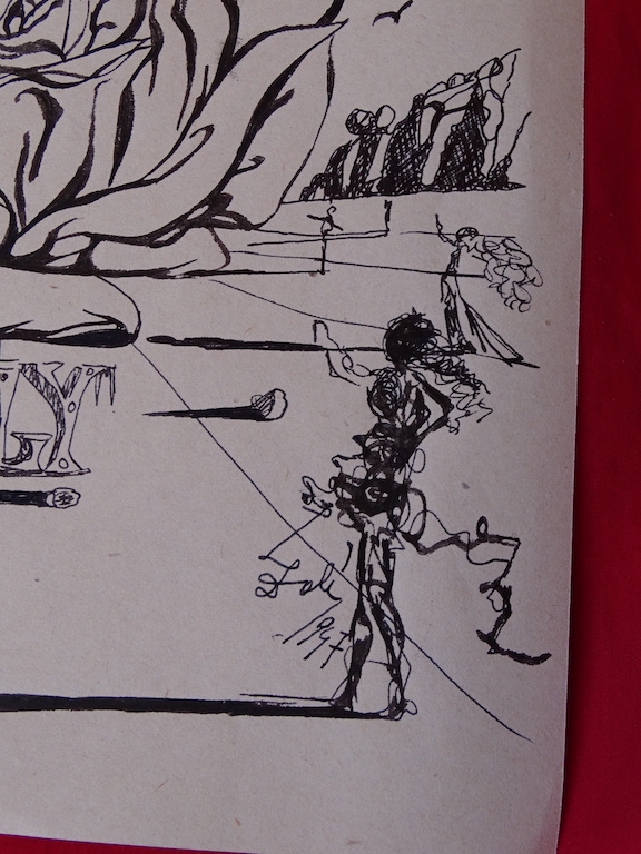 Salvador Dali (attributed) Salvador Domingo Felipe Jacinto Dalí i Domènech, Marquess of Dalí of Púbol 11 May 1904 23 January 1989) was a Spanish surrealist artist renowned for his technical skill, precise draftsmanship, and the striking and bizarre images in his work. Born in Figueres, Catalonia, Spain, Dalí received his formal education in fine arts in Madrid. Influenced by Impressionism and the Renaissance masters from a young age he became increasingly attracted to Cubism and avant-garde movements. He moved closer to Surrealism in the late 1920s and joined the Surrealist group in 1929, soon becoming one of its leading exponents. His best-known work, The Persistence of Memory, was completed in August 1931, and is one of the most famous Surrealist paintings. Dalí lived in France throughout the Spanish Civil War (1936 to 1939) before leaving for the United States in 1940 where he achieved commercial success. He returned to Spain in 1948 where he announced his return to the Catholic faith and developed his "nuclear mysticism" style, based on his interest in classicism, mysticism, and recent scientific developments.