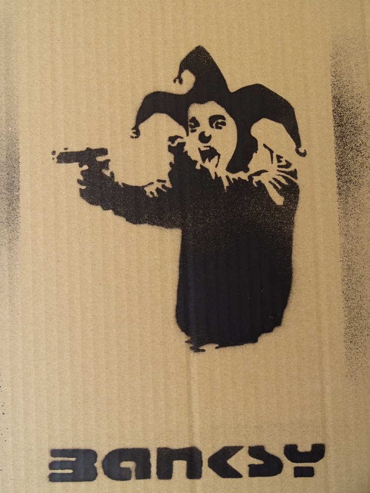 Banksy signed dismaland artwork. Good condition in general Material: cardboard Stencil spray paint from Banksy's theme park "Dismaland" held for two months from August to September 2015. Artist: BANKSY