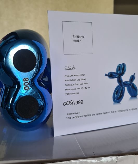 Balloon Dog in very rare color blue. Edition studio Exceptionally low No 008/999 Original packaging and certificate present. This is the first edition limited to 999 pieces worldwide. Very careful, insured and fast shipping.