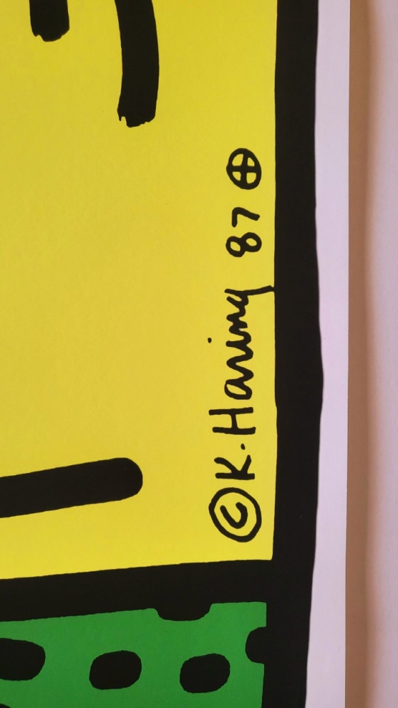 Seriegrafie in kleur, zeer helder en scherp Gesigneerd en gedateerd in de plaat Uitgegeven door Albin Uldry Ref.: 'Keith Haring Editions on Paper', pagina 78 Met "radiant baby" stempel in rechter onderhoek Afmetingen: 70 x 100 cm Laatste foto indruk ingelijst Wordt niet ingelijst verzonden met track en trace in stevige waterdichte koker