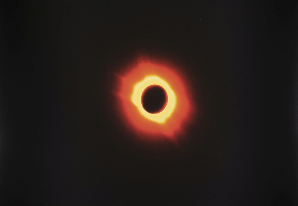 Framed photo lithograph of solar eclipse by Ann Veronica Janssens from 2013. This work is made in a series of 4 and all four are offered separately. The work is hand-numbered by the artist (see photo). Ann Veronica Janssens (B, 1956) is an international sculptor of light, sound and space. Ann Veronica Janssens almost always works in a minimal way without really belonging to minimal art. However, the fact that her work is sometimes associated with the minimalist movement is due to the clear design and choice of materials: transparent, glossy or, conversely, condensed and seemingly inaccessible. The artist lives and works in Brussels. The photo is from the series 'Museum to scale' published by gallerist Ronny Van de Velde. The whole will be professionally packed and shipped.
