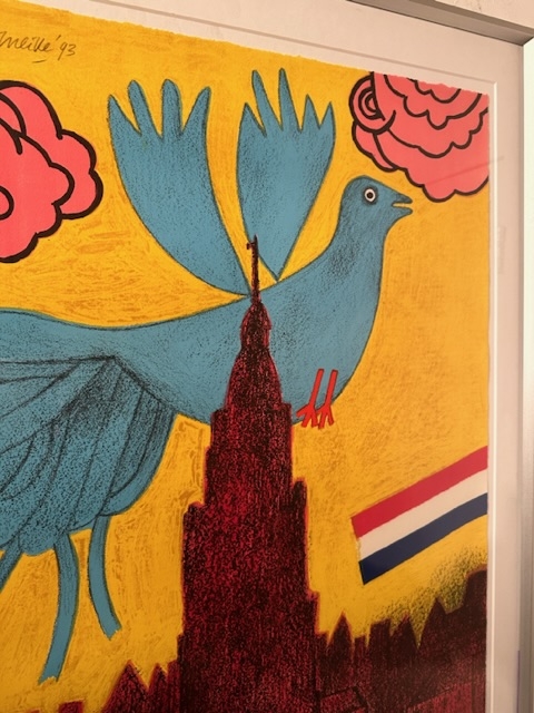 Beautiful colorful large screen print from 1993 by Corneille with the title: A bird's eye view above the belfry of Amsterdam. Edition number 250. Obviously signed, dated and numbered by Corneille in pencil. The work is professionally framed in a beautiful aluminum frame. The whole is in new condition and is ready to hang.