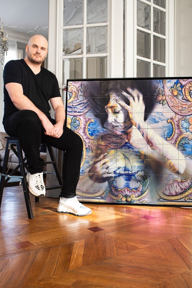 Azulejos artwork in wooden frame. Original and unique / authentic artwork. Artist O Gringo with international palmares (expo May - September 2023 Museo Lisbon). The work is delivered free of charge in Belgium. Delivery costs outside Belgium to be determined. 20kg. 120x120cm