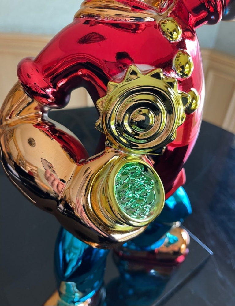 Candy Chrome Popeye The Sailor Statue Sculpture Pop Art!! For sale is a beautiful custom Popeye sculpture. This statue is made of a resin material and is coated with candy chrome! It is approximately 40cm" high and is designed after Jeff Koons' Popeye statue displayed at the famous Wynn Hotel in Las Vegas. There is so much attention to detail on this piece with Popeye's pipe, tattoos and can of spinach! It is so colorful and vibrant and shines brightly in your home. This is a great reproduction at a very affordable price!