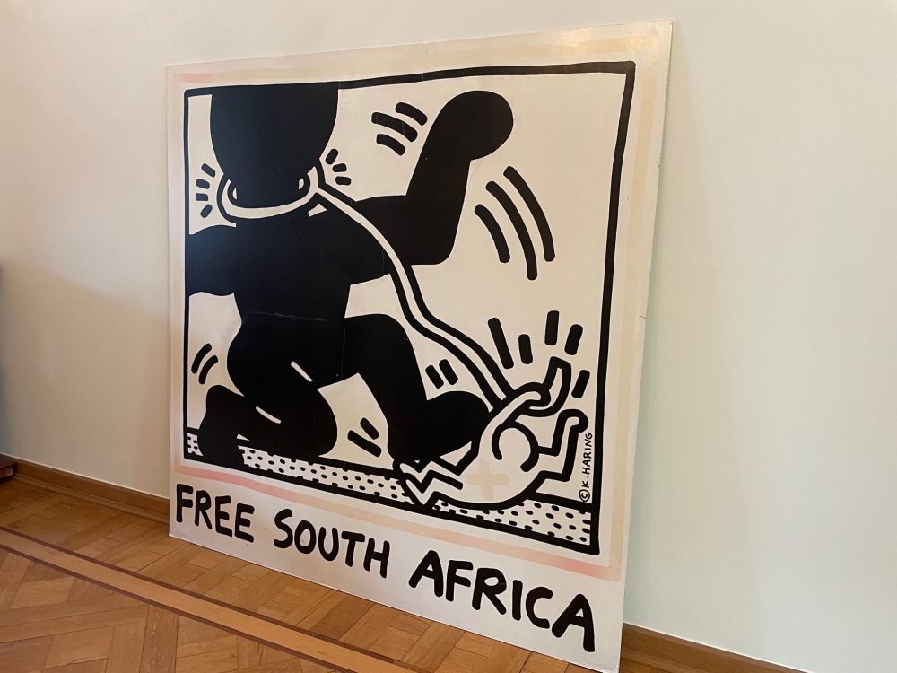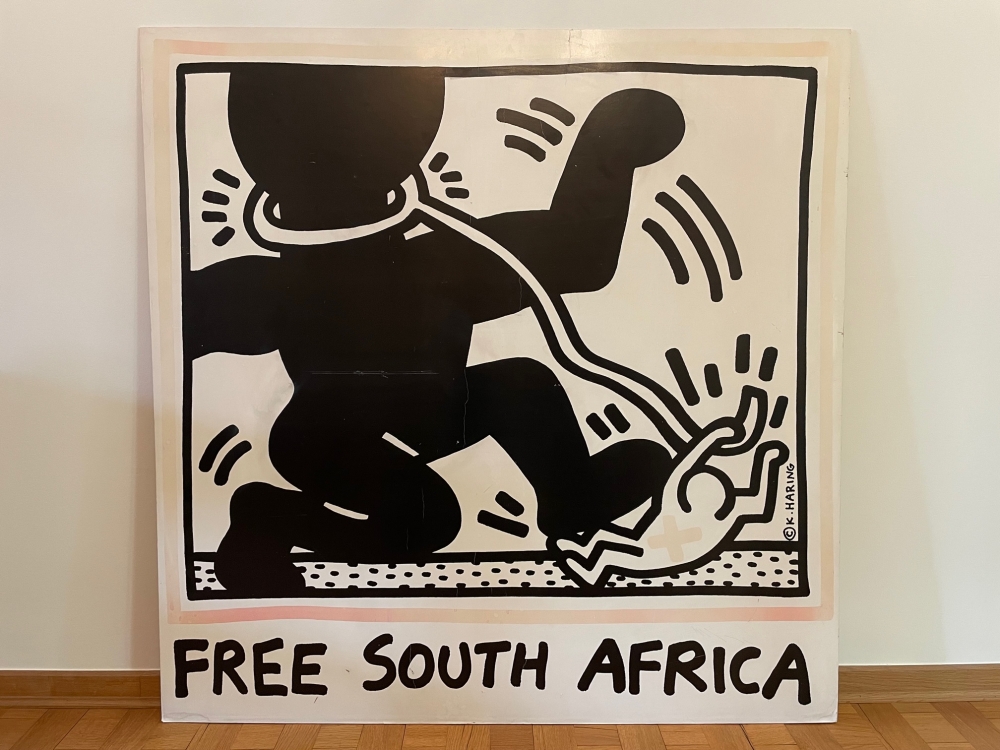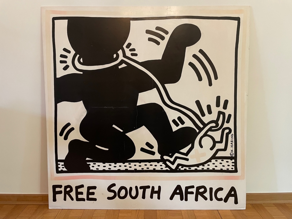 Hierbij verkoop ik een Zeefdruk van Keith Haring, groot formaat: - Keith Haring - Free South Africa - Zeefdruk op Acryl plaat - Afmetingen: 120cm*120cm - Periode: Jaren 80 en zeer zeldzaam Indicatieve galerij prijs die ik meekreeg: 8000 - 12500 euro