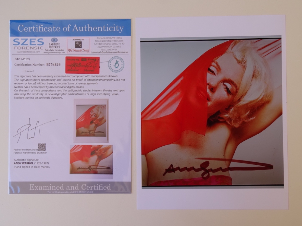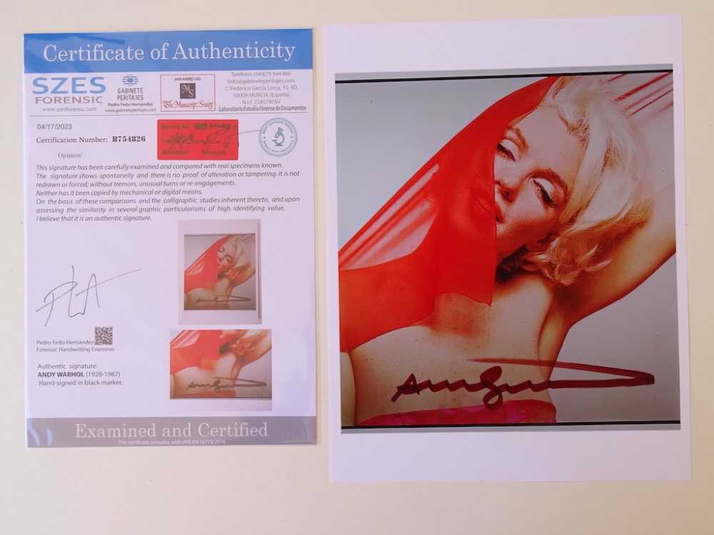 Andy Warhol (1928-1987) - Marilyn Andy Warhol, hand signed, COA included, offset print Warhol has been the subject of numerous retrospective exhibitions, books, and feature and documentary films. The Andy Warhol Museum in his native city of Pittsburgh, which holds an extensive permanent collection of art and archives, is the largest museum in the United States dedicated to a single artist. Warhol has been described as the "bellwether of the art market". Many of his creations are very collectible and highly valuable. His works include some of the most expensive paintings ever sold.[7] In 2013, a 1963 serigraph titled Silver Car Crash (Double Disaster) sold for $105 million. In 2022, Shot Sage Blue Marilyn (1964) sold for $195 million, which is the most expensive work of art sold at auction by an American artist. Contents