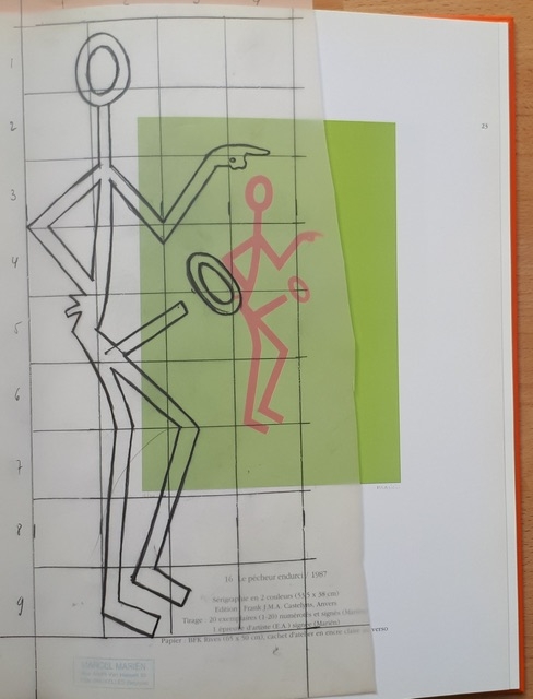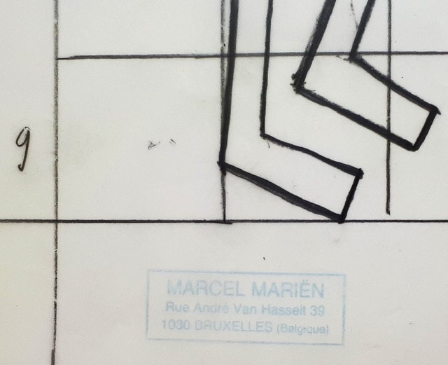 Marcel Mariën: 'Le pécheur endurci.' Two preparatory drawings: 32 x 16 / 16 x 13 Two original drawings/sketches, one stamped. The stamp serves as a signature. The drawings were used in 1987 as the basis for a lithograph of 20 copies (see photo)
