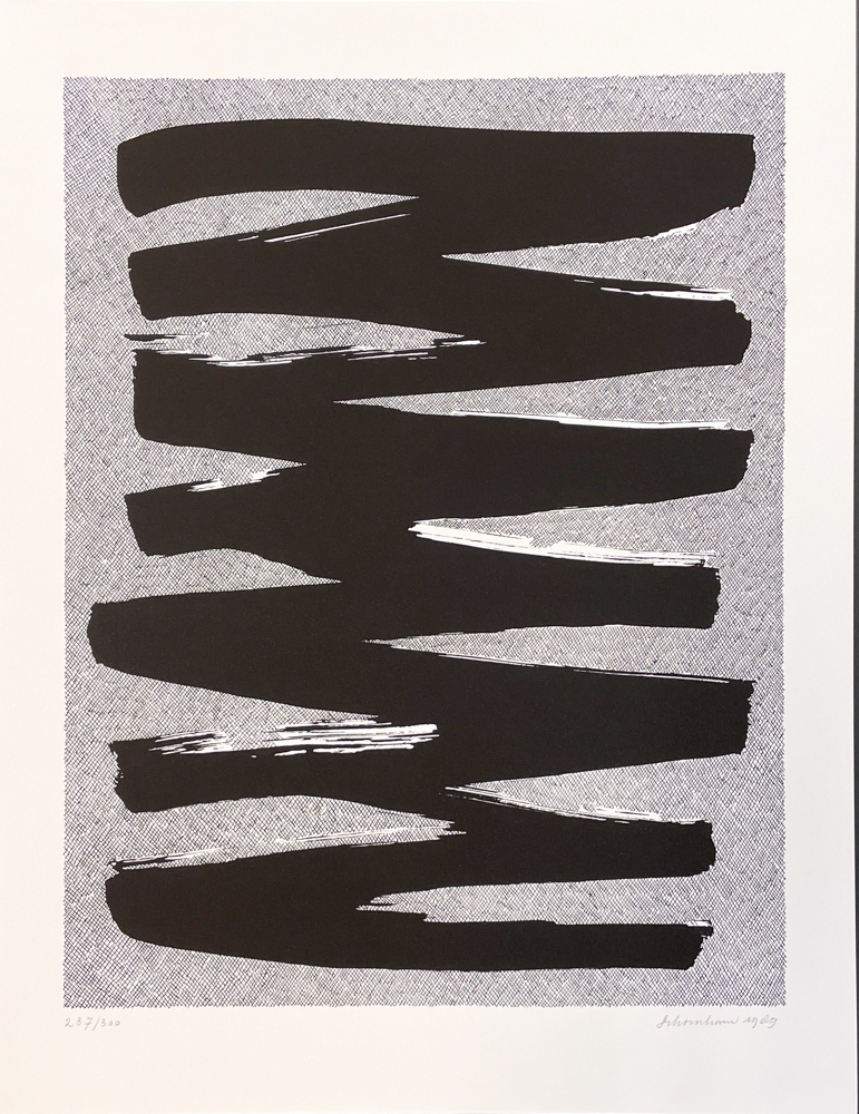 Very large and beautiful color lithograph by the Belgian artist Roger Raveel. The work is signed and numbered 237/300. This work is offered together with 4 other works by Armando, Corneille, Ger Lataster and Jan Schoonhoven. All works are signed in pencil and numbered 237/300. So you are bidding on 5 works with original folder and colophone. The photos of Raveel's work are effective photos of the work. The other photos may differ slightly. Numbering is 237/300 throughout. Unique opportunity to be able to tap such a complete folder on the head. Raveel's work is described in the graphic oeuvre under number 189 on page 154.