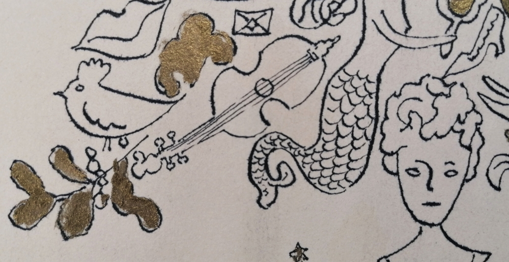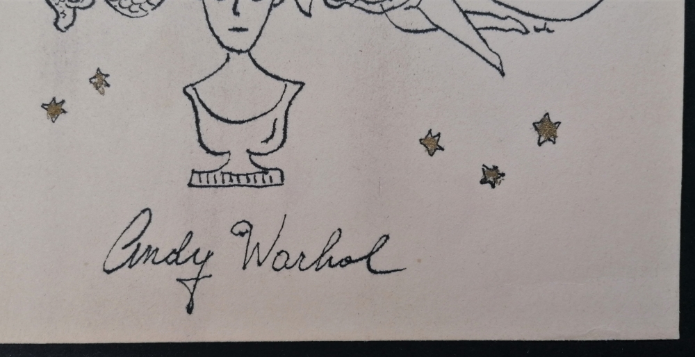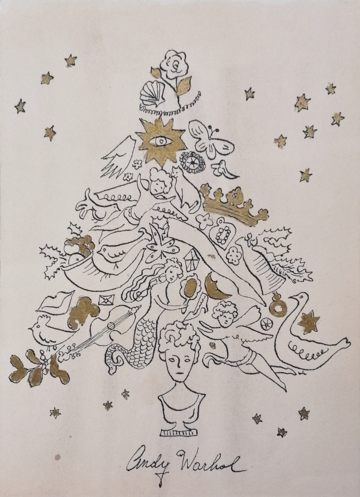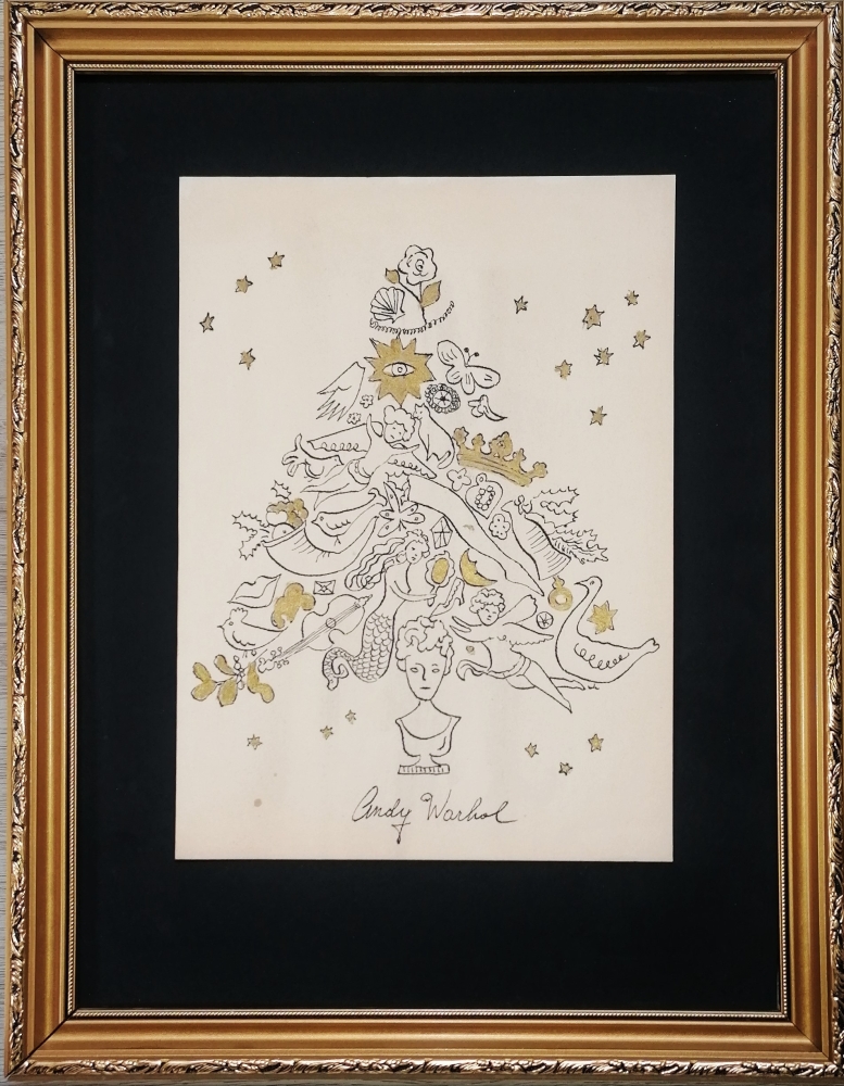 Andy WARHOL (1928 -1987) After Christmas tree, 1957 Ink drawing with gold paint on thick paper, design or study for a Christmas card. Dimensions are 28.5 x 21.5 cm. Framed under plexi glass with the dimensions 44 x 34 cm Preserved in good condition.
