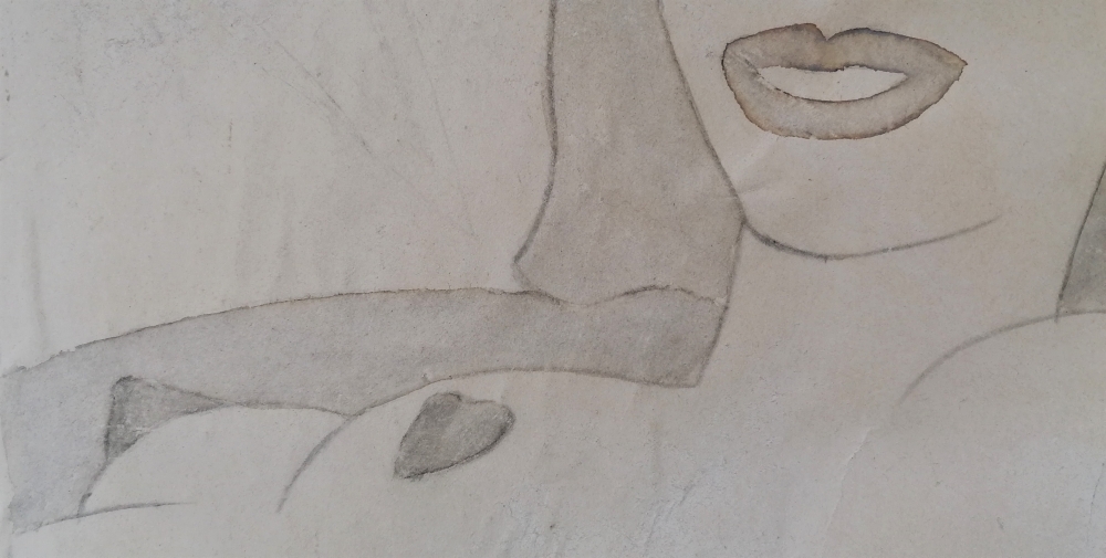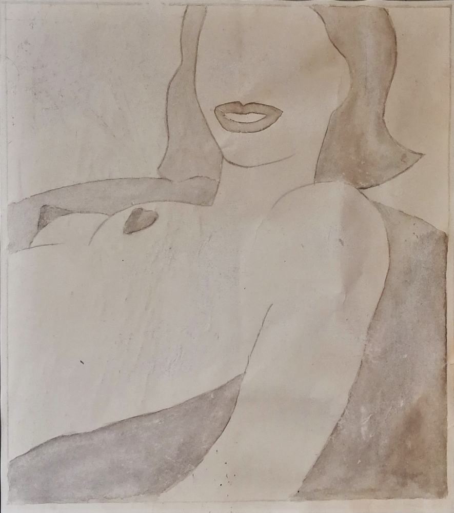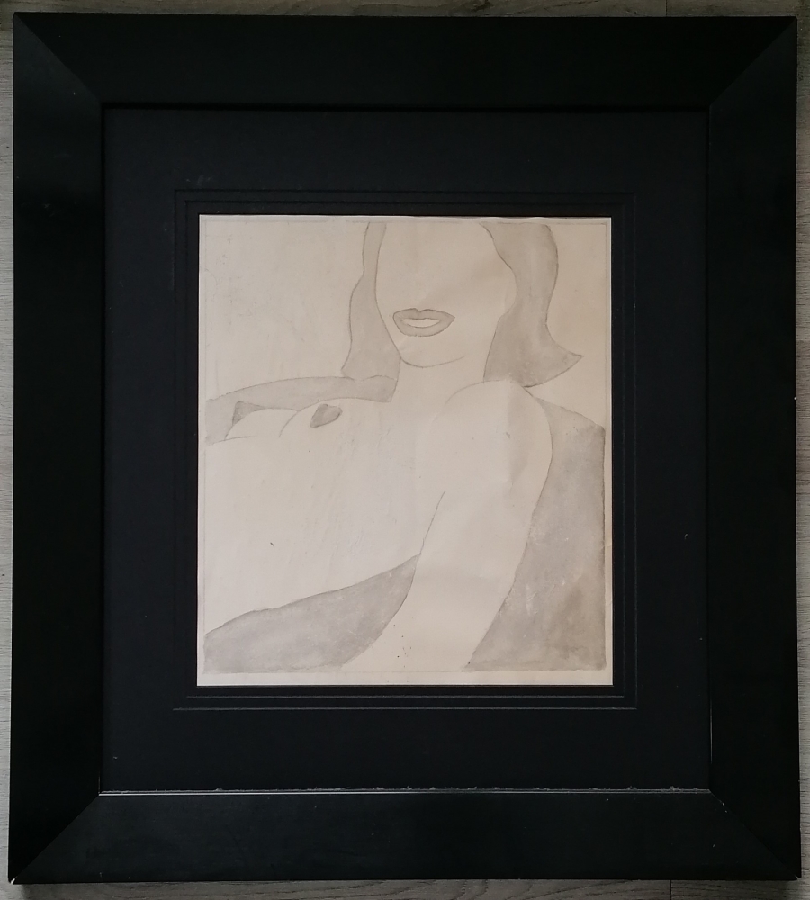 Tom WESSELMANN (1931 -2004) Drawing in pencil and ink on paper. This is most likely a study for the work Great American Nude for which several versions and studies exist. Work is signed bottom right and dated 1965. Dimensions: 42 x 37 cm In rough vintage condition. Paper has irregularities and imperfections. In a black frame, with three double passe-partout 76 x 69 cm
