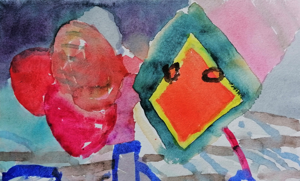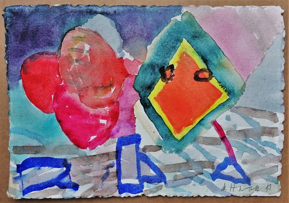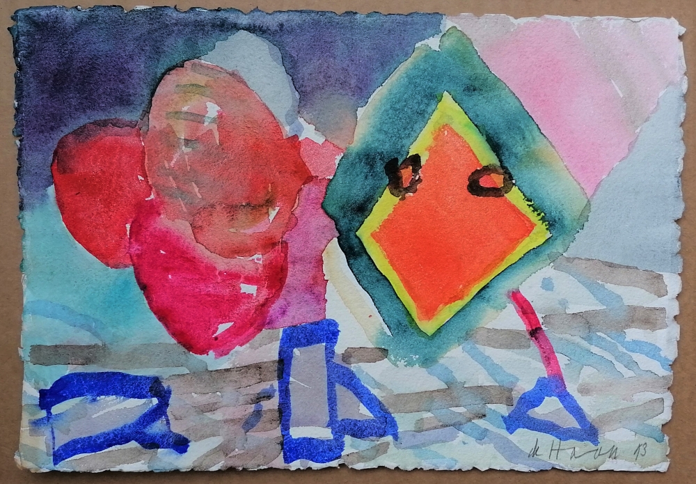 Jurjen de Haan (1936-2018) Watercolor on thick paper Two Cobra figures in landscape Signed lower right in pencil and dated 1993 Preserved in perfect condition, beautiful deep, fresh colours