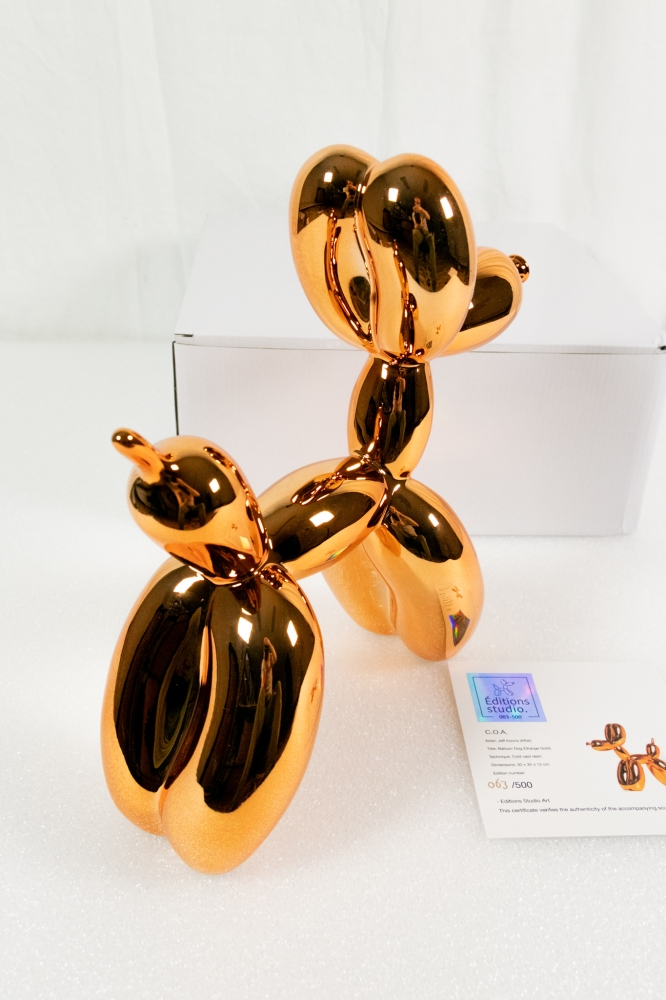 Resin sculpture after Jeff Koons, published by Éditions Studio. Edition limited to 500 pieces. The sculpture comes with the original packaging and is accompanied by the original certificate. Sculpture is in good to excellent condition.