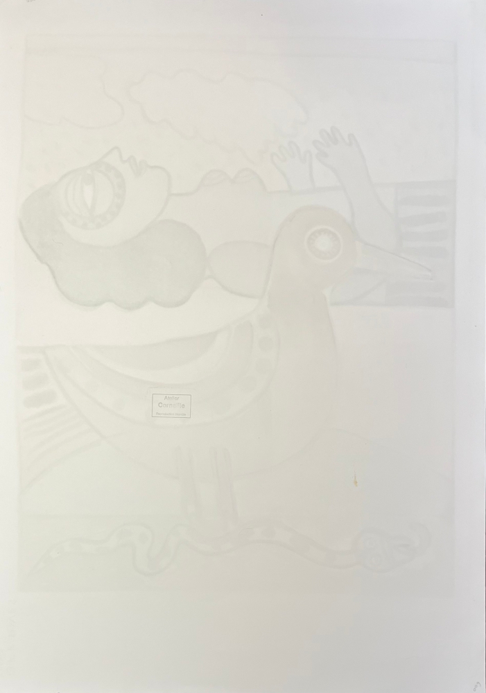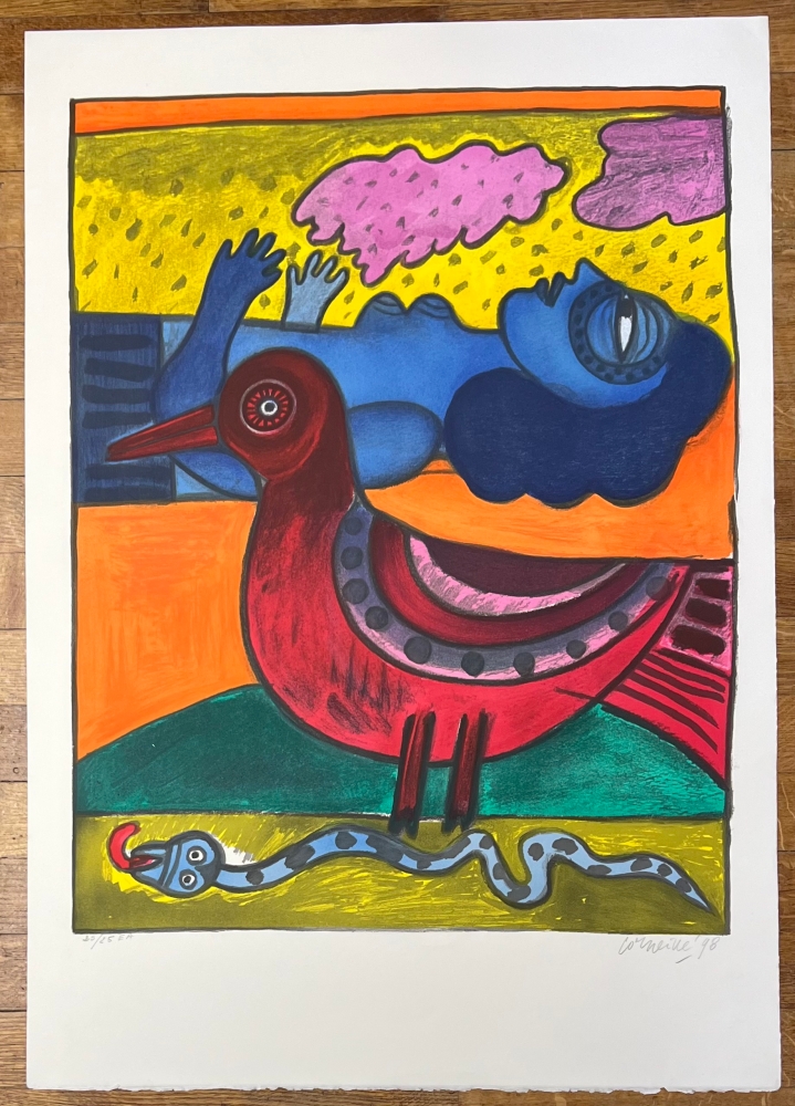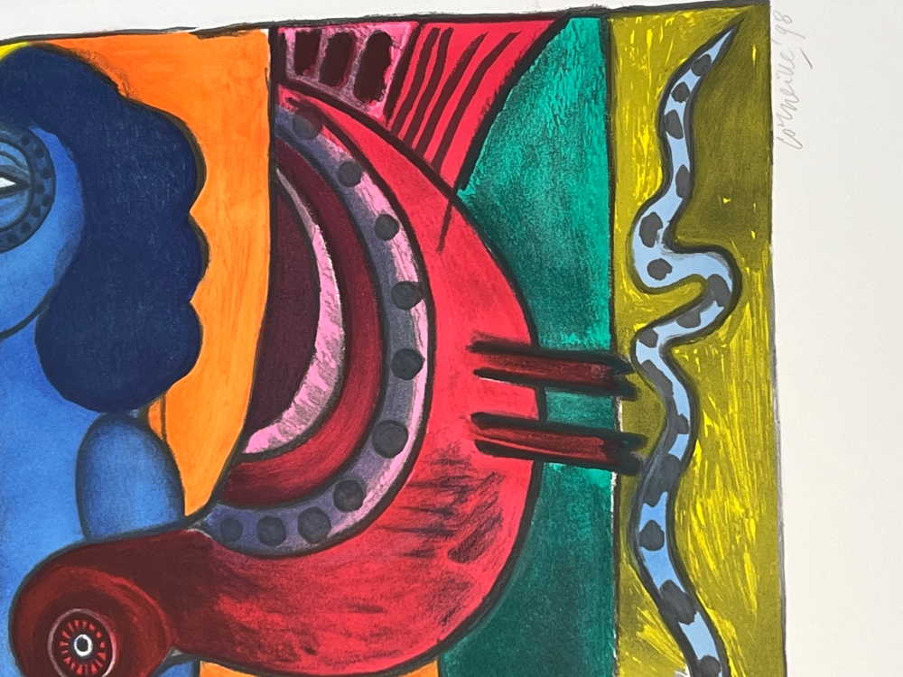 A fine work conveying a real pleasure in colour, produced 50 years after the creation of the Cobra group. Artist's copy E/A 25/25, signed and dated in graphite at the bottom. with the Atelier Corneille stamp on the back. Very good condition. 89 x 62.5 cm Cobra 75th Anniversary Exhibition from 1st June at the Cobra Museum in Amstelveen. Cobra exhibition of Corneille's largest American collection in Miami in spring and summer 2023. The Corneille retrospective at the Cobra Museum in Amstelveen ended on 15 January. Release of a Cobra / Corneille stamp by Bpost in 2023. Corneille jewellery exhibited at the Boghossian Foundation until 14 May 2023 (Ornamentum, Collection Diane Venet)