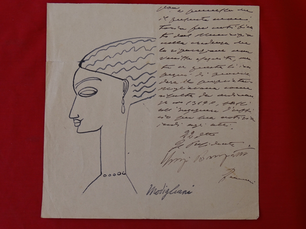 Amedeo Modigliani, attributed, ink drawing, hand signed Amedeo Clemente Modigliani was an Italian painter and sculptor who worked mainly in France. He is known for portraits and nudes in a modern style characterized by a surreal elongation of faces, necks, and figures that were not received well during his lifetime, but later became much sought-after. Modigliani spent his youth in Italy, where he studied the art of antiquity and the Renaissance. In 1906, he moved to Paris, where he came into contact with such artists as Pablo Picasso and Constantin Brâncuși. By 1912, Modigliani was exhibiting highly stylized sculptures with Cubists of the Section d'Or group at the Salon d'Automne.