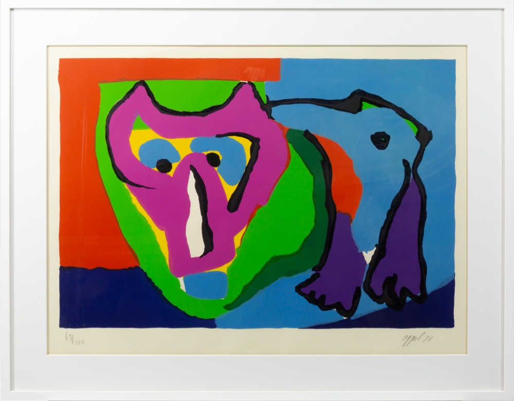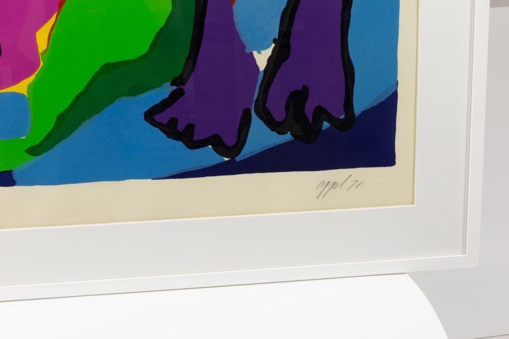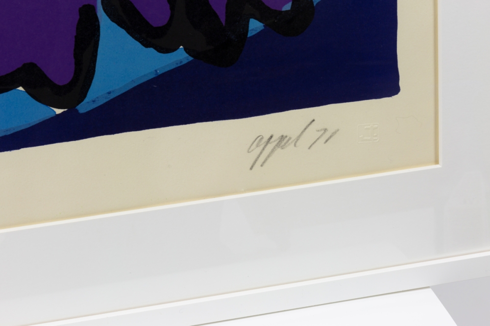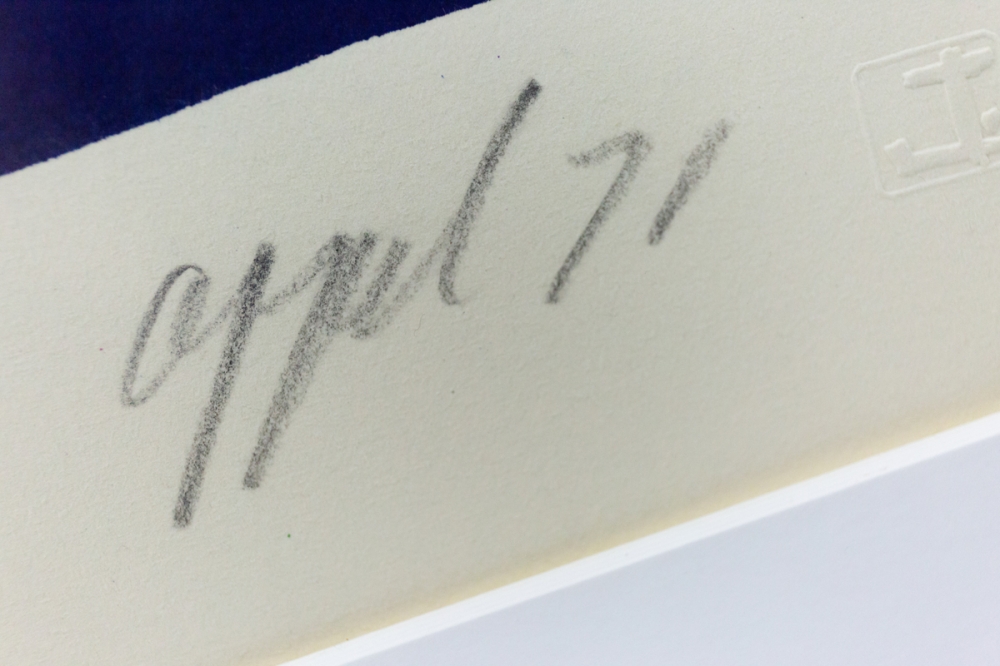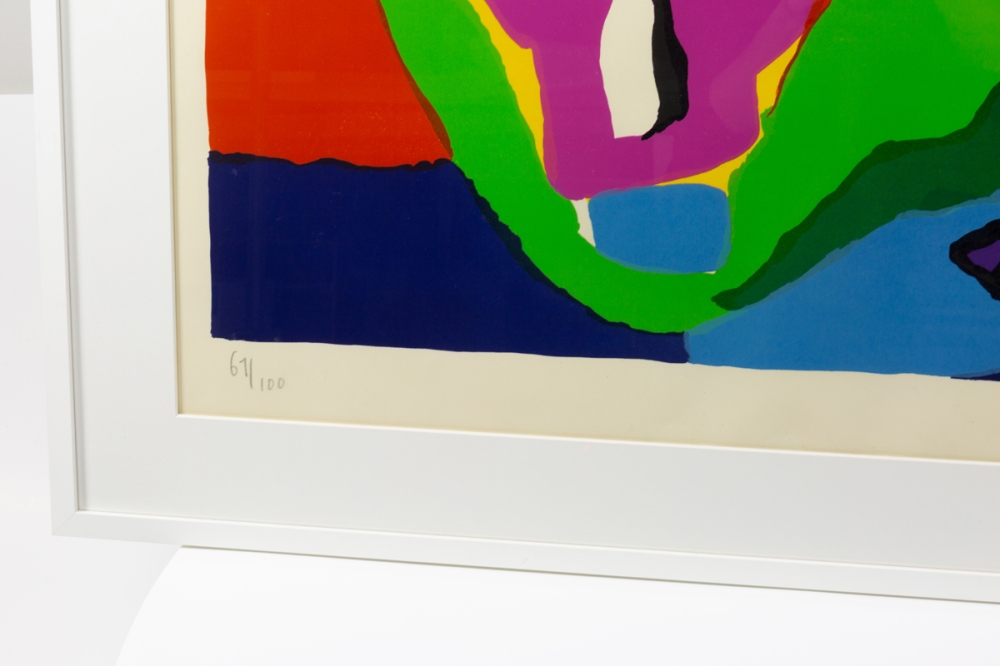 Ingelijst met UV-werend glas, zowel kader als werk in uitstekende staat.
