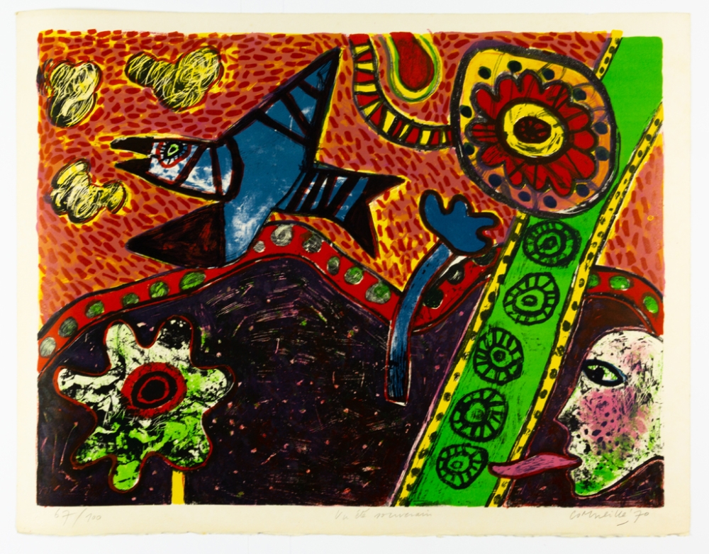 Een zeefdruk van Corneille, in een mooi formaat. Met de hand getiteld, genummerd en gesigneerd.
