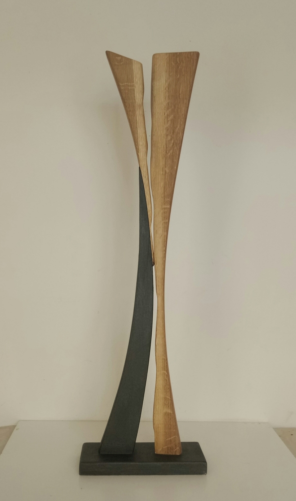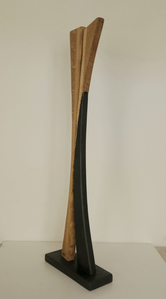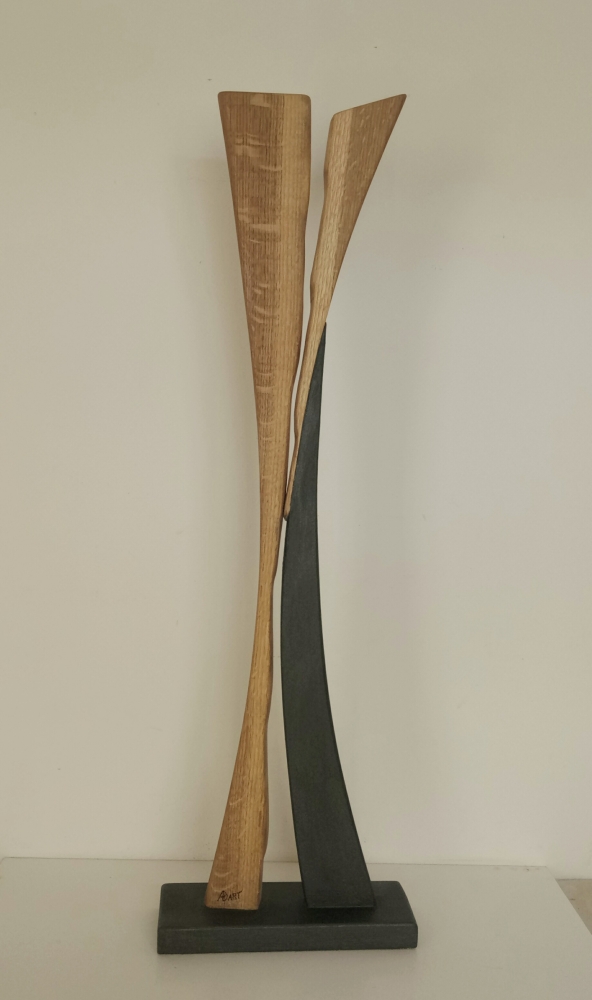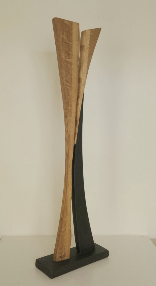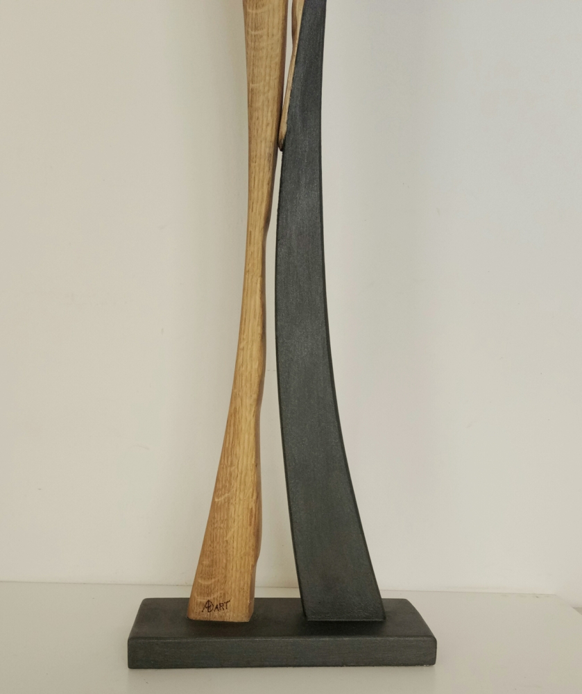 "Dolmen 43" is an artistic sculpture in solid oak wood and metal effect paint; oil finish. It is an object that creates a unique atmosphere in the environment in which it is located and, if illuminated, creates suggestive shadows. In its forms the work follows the original structure of the wooden plank from which it was obtained and is a unique piece. Brand A + D art