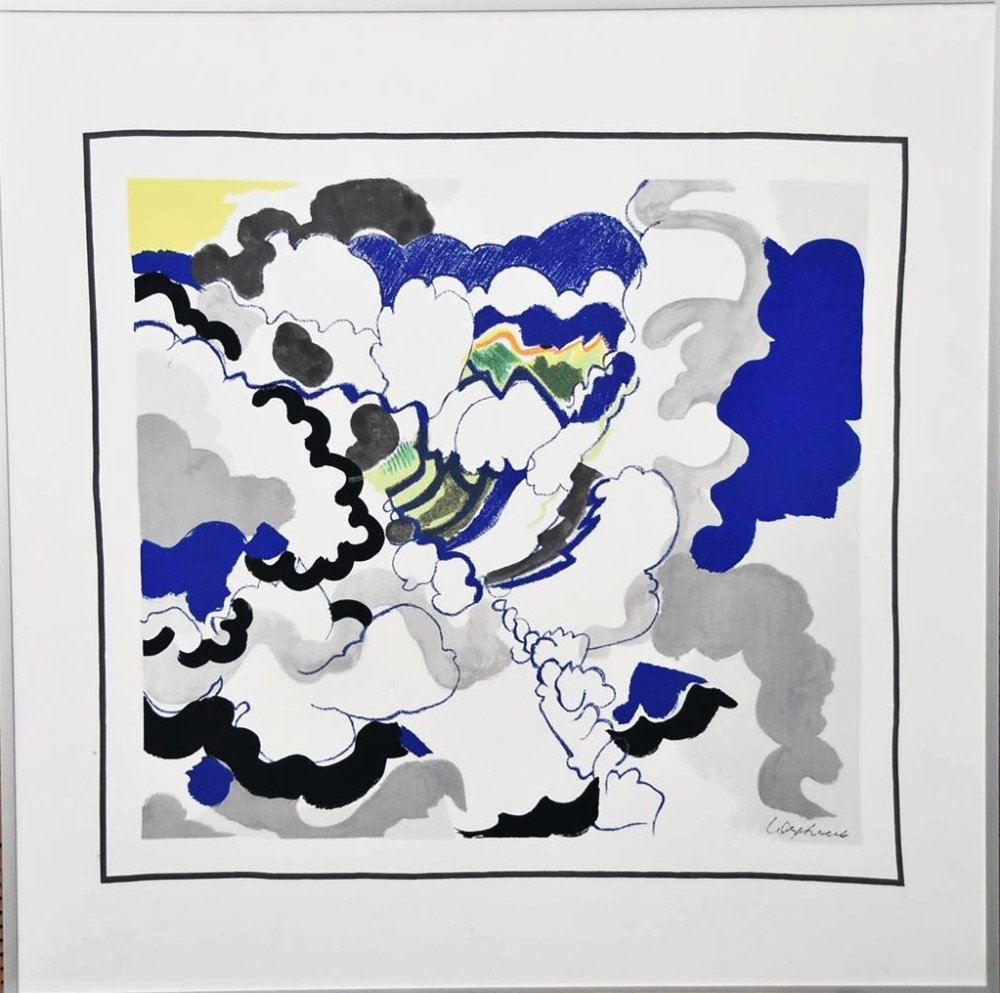 Maurice WYCKAERT (1923-1996) Abstract composition Silkscreen on canvas/textile Signed in the work at the bottom right. The dimensions are 79 x 79 cm. Preserved in perfect condition with beautiful deep and fresh colours, ready to hang on the wall. In a silver colored frame, 81 x 81 cm