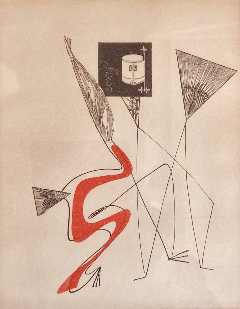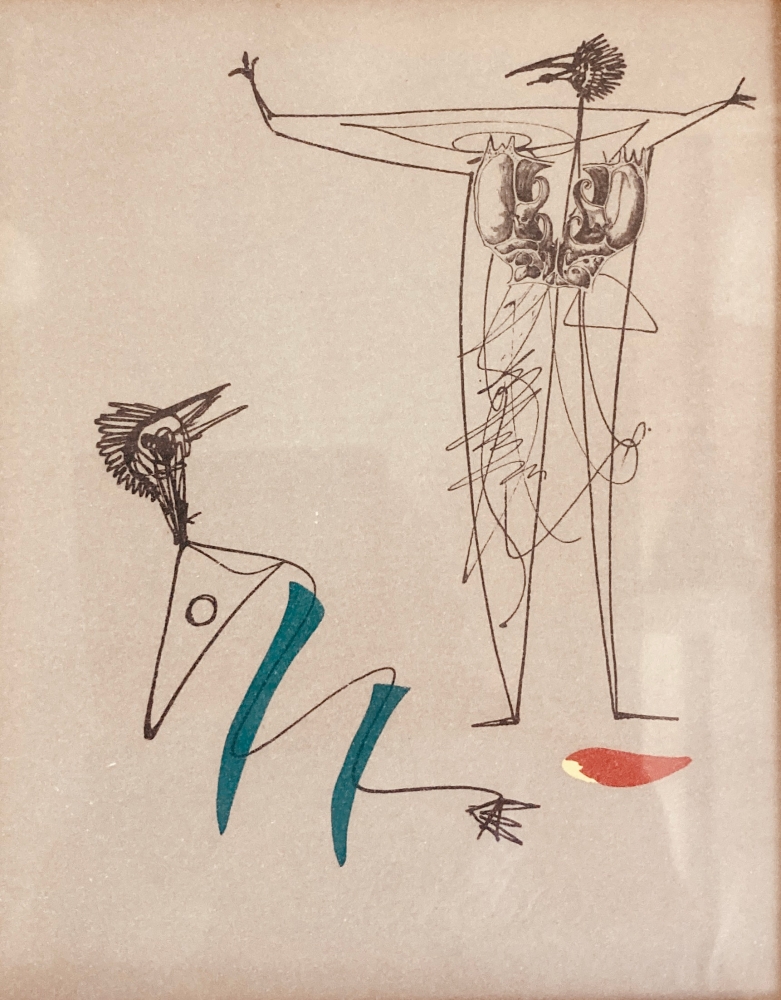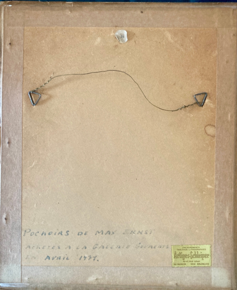 Max Ernst uit LA BREBIS GALANTE door Benjamin Peret. Edition Premieres, Parijs, 1949. Max Ernst was een vooraanstaand lid van de surrealistische beweging. Afm.: 23,7cm x 18,5cm (zonder lijst) 30cm x 24cm. Editie: 300 Provenance: Galerie Govaerts 1971 Goede staat. Mooi professioneel ingelijst met passe partout en goudkleurige lijst.