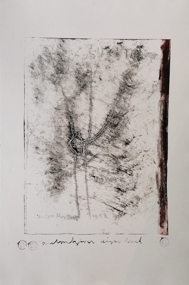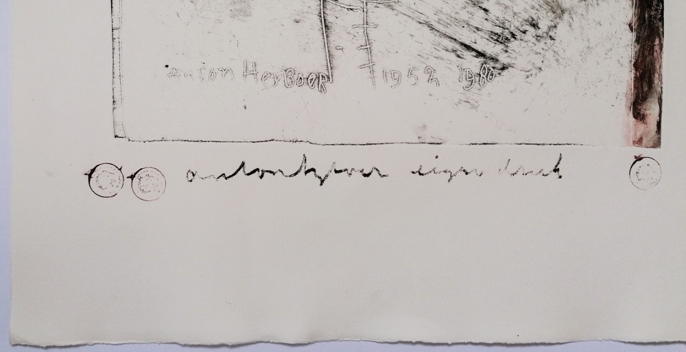 Anton Heyboer (1924- 2005) Abstractie , Zeer groot origineel werk uit 1980. Ets op Hahnemühle papier beschilderd met acrylverf. Gesigneerd door de kunstenaar onderaan. De afmetingen zijn 79 x 54 cm.