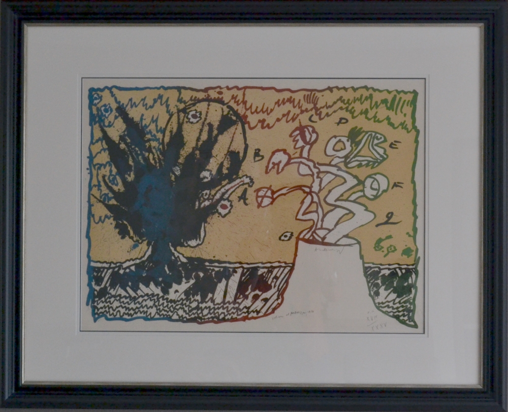 getekened en genummerd in potlood e.a. 17/25 in romeins genummerd de afmetingen van de litho zijn 76 cm x 55 cm professioneel ingekaderd dubbele passe partout Houten zwarte kader ( 6cm op 4 cm) met een gouden randje